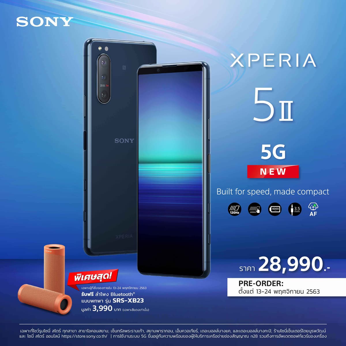 Sony เปิดตัว Xperia 5 II สมาร์ทโฟนขนาดกะทัดรัด อัดแน่นเทคโนโลยีสุดล้ำ รองรับ 5G ยกระดับทุกประสบการณ์บันเทิง ถ่ายภาพ และเล่นเกม พร้อมเปิดจอง 13 พฤศจิกายน นี้ ราคา 28,990 บาท