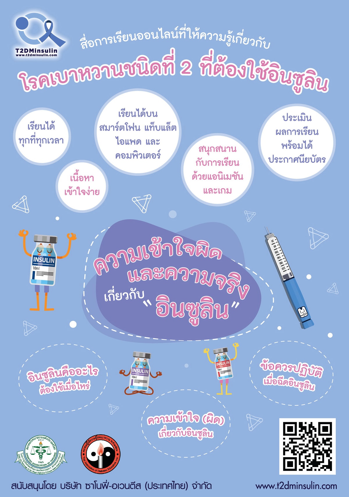 เนื่องในวันเบาหวานโลก ปี 2563 นี้ สมาคมโรคเบาหวานแห่งประเทศไทยฯ และสมาคมผู้ให้ความรู้โรคเบาหวาน ร่วมกับบริษัท ซาโนฟี่-อเวนตีส (ประเทศไทย) จำกัด มีเจตนารมณ์เพื่อให้ผู้ป่วยสามารถควบคุมระดับน้ำตาลในเลือด ลดการเกิดภาวะแทรกซ้อน และมีคุณภาพชีวิตที่ดีขึ้น จึงได้ร่วมกันจัดทำสื่อการเรียนออนไลน์ (e-Learning) บนเว็บไซต์ www.t2dminsulin.com เพื่อให้ผู้ป่วยโรคเบาหวาน โดยเฉพาะผู้ป่วยโรคเบาหวานชนิดที่ 2 ที่ต้องใช้อินซูลินและผู้ดูแลผู้ป่วยสามารถเรียนรู้และสร้างความเข้าใจในการใช้อินซูลินได้ทุกที่ ทุกเวลา ผ่านแพลตฟอร์มที่หลากหลายทั้งคอมพิวเตอร์โน๊ตบุ๊ค สมาร์ทโฟน และแท็บเล็ต