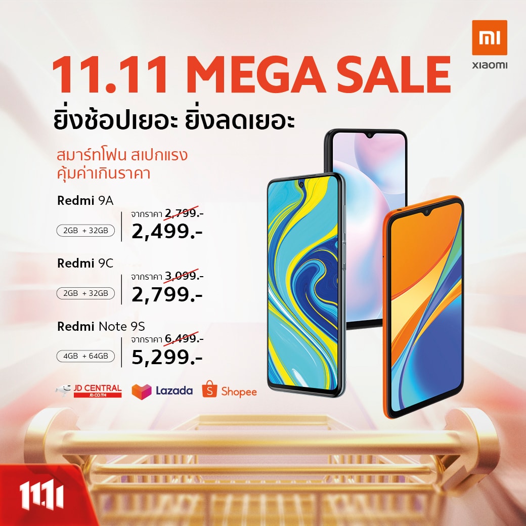 เสียวหมี่ ประเทศไทย ผู้นำเทคโนโลยีระดับโลก ขนทัพสมาร์ทโฟนรุ่นฮิต Mi 10T Pro, POCO X3, Redmi Note 9S และ Redmi 9C พร้อมด้วยผลิตภัณฑ์อีโคซิสเต็ม อย่าง Mi Smart Speaker ลำโพงอัจฉริยะรุ่นล่าสุด Mi Air Purifier 3C เครื่องฟอกอากาศยอดฮิต และ Mi Robot Vacuum-Mop Essential หุ่นยนต์ดูดฝุ่น มอบข้อเสนอสุดพิเศษให้กับลูกค้า ในมหกรรมออนไลน์แห่งปีกับแคมเปญ 11.11 บนแพลตฟอร์มอีคอมเมิร์ซทั้ง 3 พันธมิตรอย่าง Lazada, Shopee และ JD Central ตั้งแต่ 00.00 น. ของวันที่ 11 พฤศจิกายนนี้