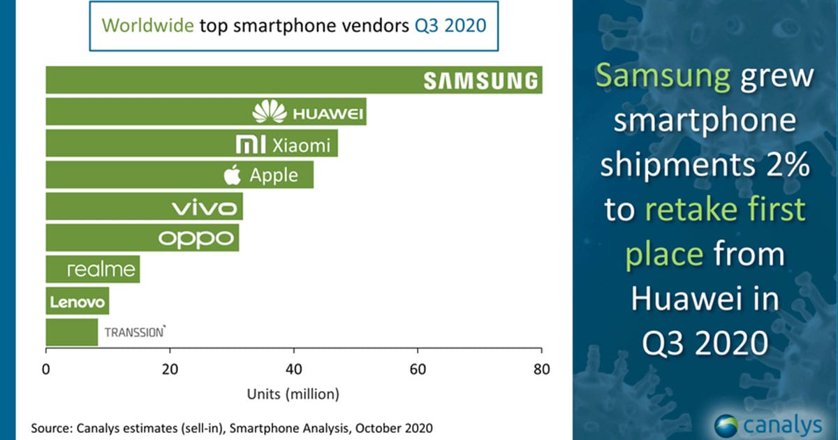ถือเป็นความสำเร็จและการเติบโตของ Xiaomi ที่ก้าวขึ้นสู่ อันดับ 3 ในตลาดสมาร์ทโฟนทั่วโลก หลังสามบริษัทวิจัยตลาด Canalys, Counterpoint และ IDC เผยผลสำรวจตลาดสมาร์ทโฟนไตรมาส 3 ปี 2020 ได้มีการส่งมอบสมาร์ทโฟนทั่วโลกสูงถึง 348.0 ล้านเครื่อง ลดลง 1% เมื่อเทียบกับปีก่อน แต่ยอดส่งมอบกลับเพิ่มขึ้น 22% เมื่อเทียบกับไตรมาสก่อนหน้านี้