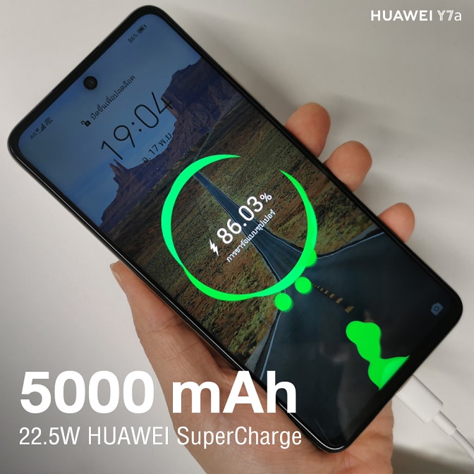 แน่นอนว่าไม่ว่าจะดูหนังเพลินๆ เล่นเกมมันส์ๆ หรือไถโซเชียลแบบชิวๆ ถ้ามีเหตุขัดข้องที่ทำให้ต้องหยุดละก็ คงจะเซ็งไม่มากก็น้อย โดยเฉพาะอย่างยิ่งเมื่อแบตหมด แต่เรื่องขัดใจแบบนี้ไม่เกิดกับ HUAWEI Y7a แน่นอนเพราะแบตเตอรี่ของสมาร์ทโฟนสายเอนเตอร์เทนรุ่นนี้มาในความจุแบบใหญ่เบิ้มที่ 5000 mAh แบบที่สามารถดูวิดีโอออนไลน์ได้นานสูงสุดถึง 23 ชั่วโมง หรือถ้าแบตเกิดหมดขึ้นมาจริงๆ ก็ไม่ต้องรอนานเพราะ HUAWEI Y7a รองรับเทคโนโลยีชาร์จไว 22.5W HUAWEI SuperCharge ที่รอชาร์จเพียง 10 นาทีก็สามารถหยิบมือถือไปลั้ลลาดูหนังต่อได้ถึง 2 ชั่วโมง คำว่าแบตหมดหรือแบตน้อยจะไม่เป็นปัญหากวนใจอีกต่อไป หรือสำหรับสายเกมที่เบื่อการรบกวนจากโนติต่างๆ ใน HUAWEI Y7a มีโหมดที่ทำให้ปัญหานี้หมดไป อย่าง AppAssistant เพียงเข้าไปตั้งค่าการใช้งาน Game Space ที่เมื่อปรับเป็นโหมดนี้ก็จะทำให้เล่นเกมได้อย่างไม่มีการรบกวนจากโนติแน่นอน