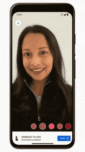 ฟีเจอร์ใหม่นี้จะช่วยให้คุณเข้าถึงการแต่งหน้าเสมือนจริงจาก L’Oreal (ที่เป็นเจ้าของ ModiFace) ให้คุณทดลองใช้เครื่องสำอาง MAC, Black Opal และ Charlotte Tilbury เมื่อคุณค้นหาผลิตภัณฑ์จากแบรนด์เหล่านั้น เช่น ลิปสติก Powder Kiss ของ Mac บน Chrome หรือแอป Google คุณก็จะได้ทดลองฟีเจอร์ AR ใหม่ และคุณสามารถทดลองใช้อายแชโดว์และลิปสติกในรูปถ่ายของนางแบบที่มีสีผิวในแต่ละโทนหรือจะลองใช้กับตัวเองด้วยการใช้กล้องของคุณ