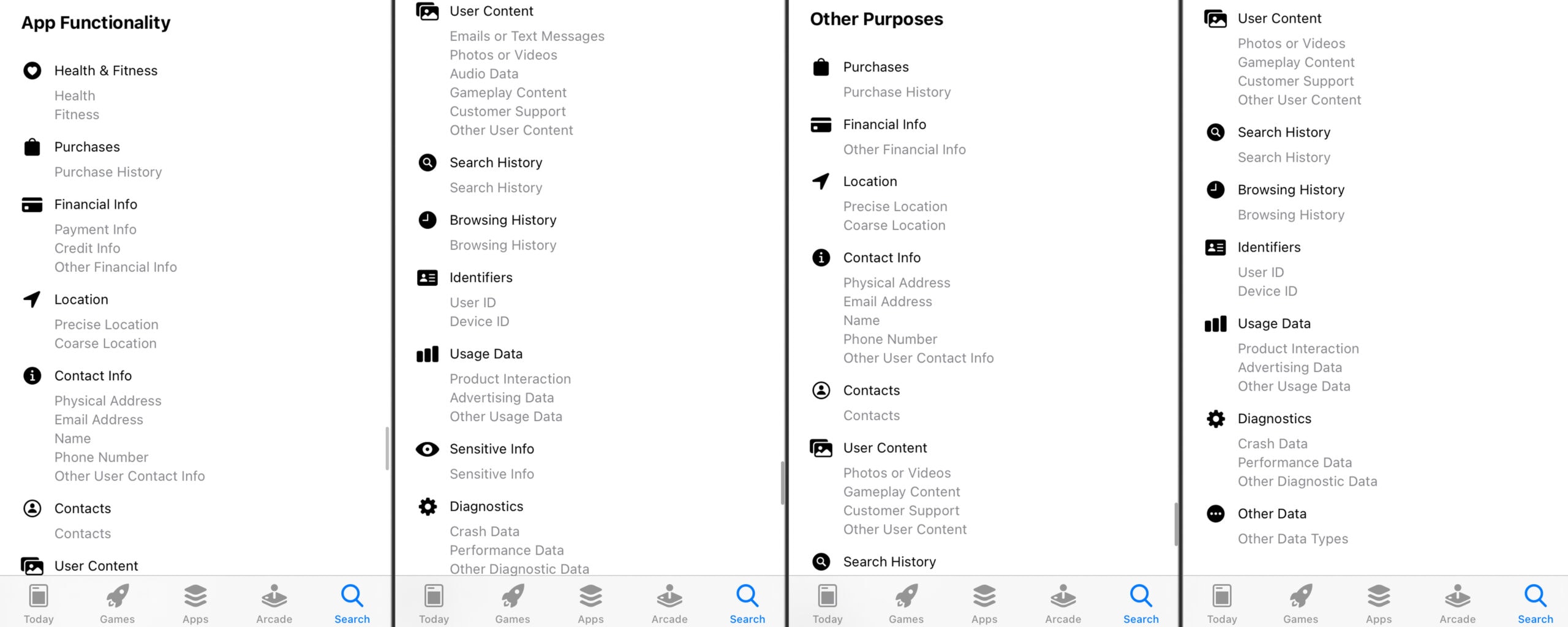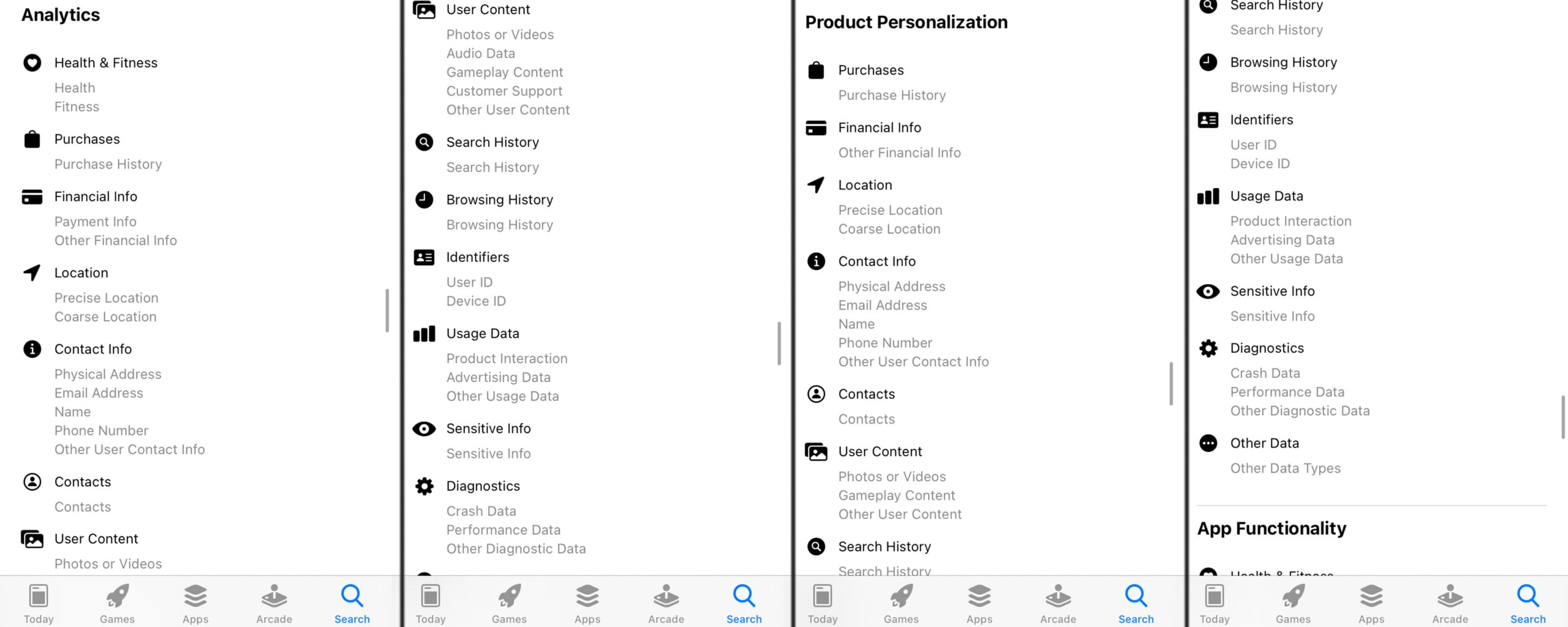 หากผู้ใช้งานอยากรู้ว่าแอปนั้นๆ ทำอะไรกับข้อมูลของคุณบ้าง หลังจากอัปเดตระบบปฏิบัติการเป็นเวอร์ชั่น 14.3 แล้ว เข้าไปที่ App Store จากนั้นค้นหาแอปที่คุณต้องการ เลื่อนลงไปด้านล่างจะเจอส่วนของ App Privacy จากนั้นให้กดเลือก See Details ก็จะเห็นรายละเอียดว่าแอปต้องการติดตามข้อมูลอะไรของผู้ใช้บ้าง