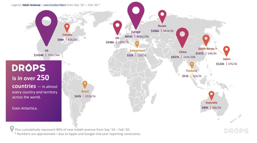 Daniel Farkas ซีอีโอของบริษัทฯกล่าวในการสัมภาษณ์กับ GamesBeat ว่าปีนี้ Drops มีผู้ใช้งานเพิ่มขึ้น 7.5 ล้านคน คาดว่าจะมียอดรวมที่ 30 ล้านคนภายในปีนี้