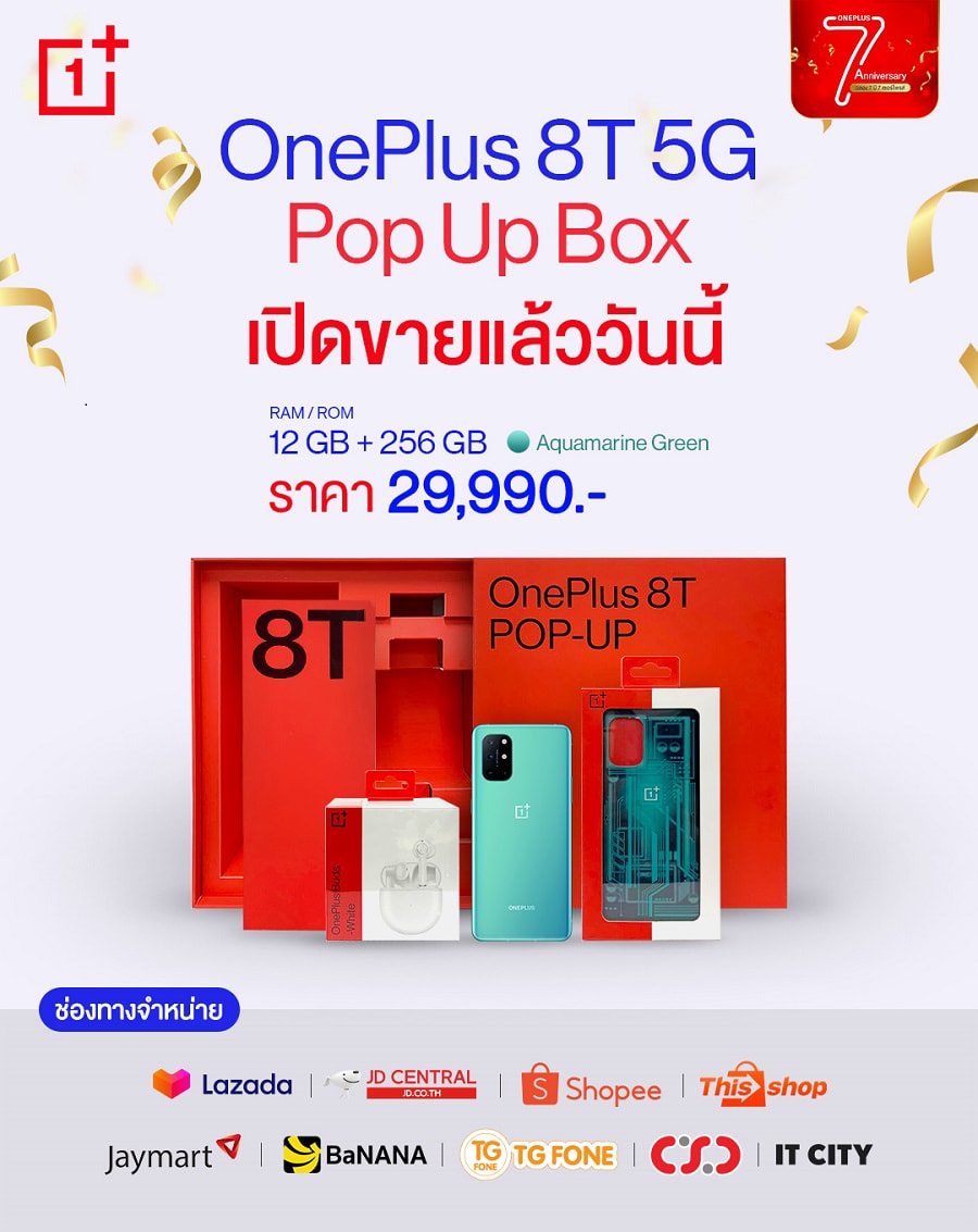 เฉลิมฉลองครบรอบ 7 ปีของทางแบรนด์ OnePlus มอบเซอร์ไพรส์สุดยิ่งใหญ่ เพื่อเป็นของขวัญแก่แฟน OnePlus ทุกท่าน ตลอดเดือนธันวาคม สุดเซอร์ไพรส์ OnePlus 8T 5G ปรับลด ราคา 3,000 บาททุกรุ่น