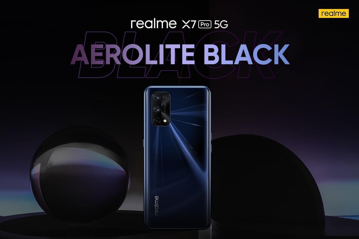 สี Aerolite Black ของ realme X7 Pro 5G แรงบันดาลใจจากอุกกาบาตสีดำในอวกาศ เคลือบผิวหลายชั้นให้สัมผัสพื้นผิวออกมาระดับพรีเมียม