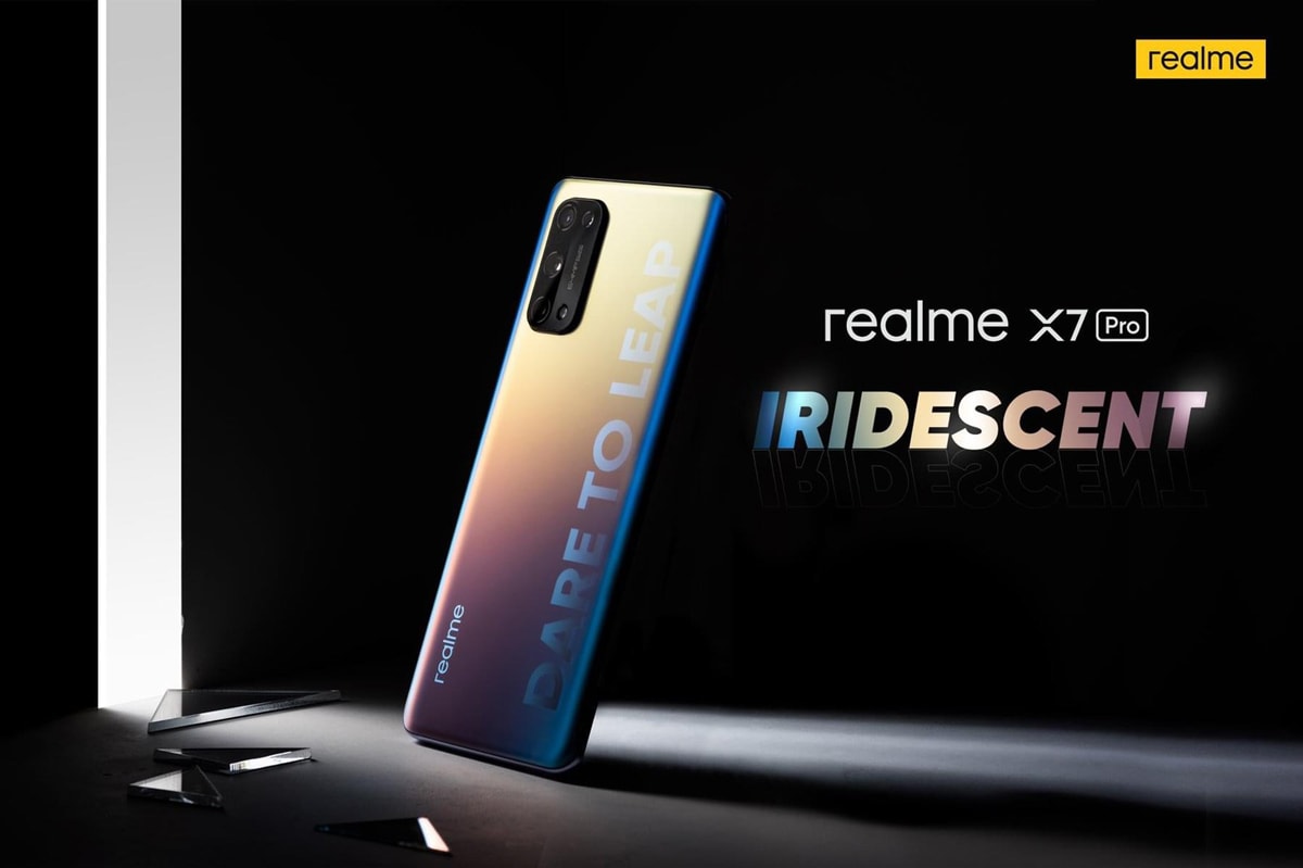 เริ่มที่สีไฮไลท์ของ realme X7 Pro 5G คือสี Iridescent ด้วยเทคโนโลยีสร้างสีพื้นผิวแบบพิเศษถึง 4 ขั้นตอน และเคลือบด้วยกระจกแบบ Anti-Glare กันลายนิ้วมือ เพื่อให้ได้สีและพื้นผิวที่มีความพิเศษน่าหลงไหลเฉพาะตัว