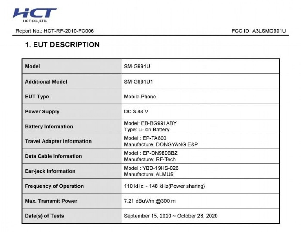 Samsung กำลังจะเปิดตัวสมาร์ทโฟนรุ่นเรือธงอย่าง Galaxy S21 series ในเดือนมกราคม 2021 นี้ และล่าสุดพึ่งได้รับการอนุมัติจาก FCC โดย Galaxy S21 มีรหัสรุ่นว่า SM-G991U พร้อมรองรับการชาร์จแบบมีสายที่ความเร็ว 25W แล้วยังระบุถึงการชาร์จแบบไร้สายแบบย้อนกลับ (Reverse wireless charging) 9W ที่เร็วกว่า Galaxy S20 ถึง 2 เท่า