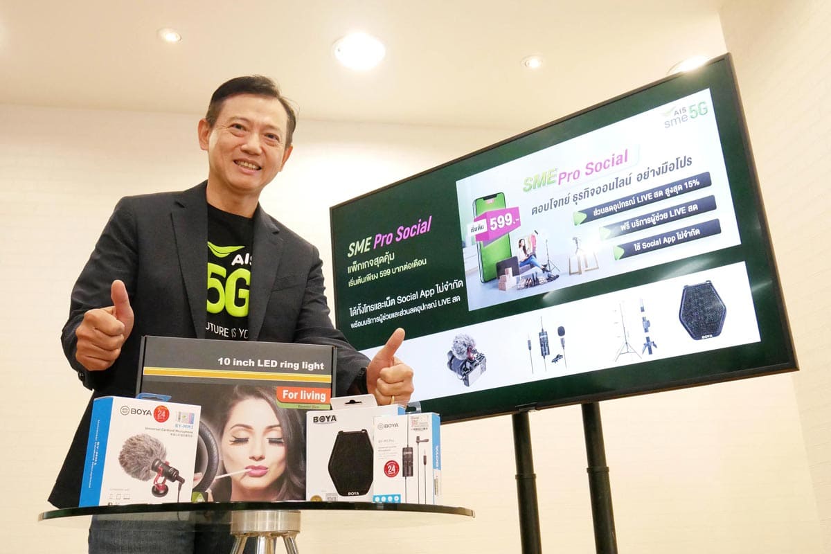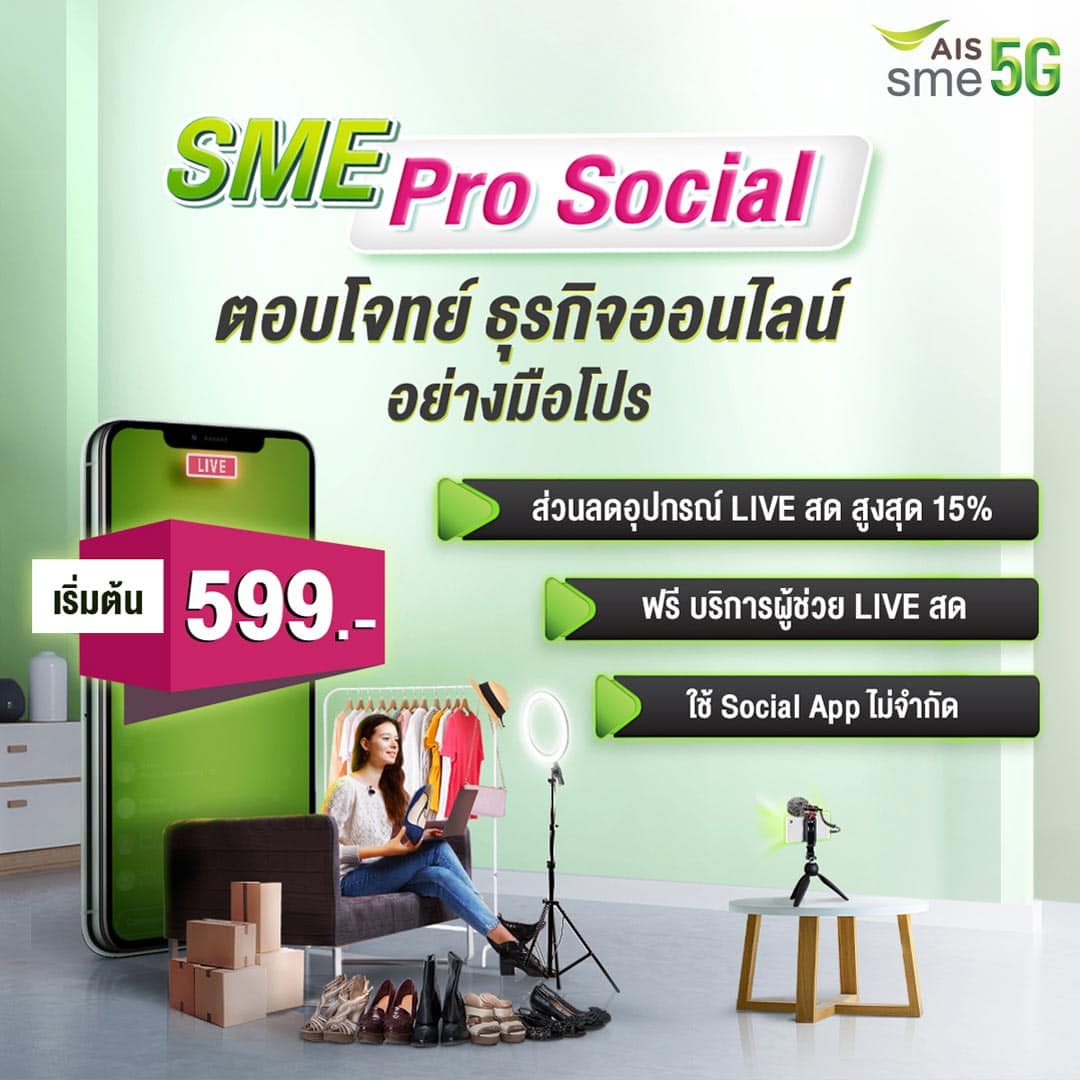 1. AIS SME Mobile Services : ครบเครื่องทุกรูปแบบการสื่อสารที่ออกแบบมาแล้วว่าเหมาะกับธุรกิจออนไลน์ อาทิ SME Pro Social ให้เป็นนักธุรกิจออนไลน์แบบมือโปร เริ่มต้นเพียง เดือนละ 599 บาท สุดคุ้ม ทั้งโทรและเน็ต พร้อมใช้ฟรีบริการผู้ช่วย LIVE สด, รับฟรีส่วนลดอุปกรณ์ LIVE สด เบื้องต้นแบบครบเซ็ต, ใช้ฟรี Social App. (Facebook, Instagram, LINE และ What App) พร้อมฟรีประกันภัยไซเบอร์ ลดความเสี่ยงที่ธุรกิจจะเสียหายจากการโจมตีทางไซเบอร์ในยุคนี้ นอกจากนี้ ยังมอบความพิเศษให้กับลูกค้าที่เปิดเบอร์ หรือย้ายค่ายได้คุ้มเต็มแรง 3 ต่อ คุ้มที่หนึ่ง รับอินเทอร์เน็ต 5G จำนวน 10 GB/เดือน นาน 3 เดือน เพื่อใช้ติดต่อสื่อสารช่วงวิกฤตโควิด คุ้มที่สอง รับสิทธิ์สินเชื่อจากธนาคาร UOB อัตราดอกเบี้ยพิเศษ และคุ้มที่สาม รับส่วนลดสูงสุดถึง 30% ในการซื้อ Tablet หรือ Smartphone (เฉพาะรุ่นที่ร่วมรายการ) จาก Samsung