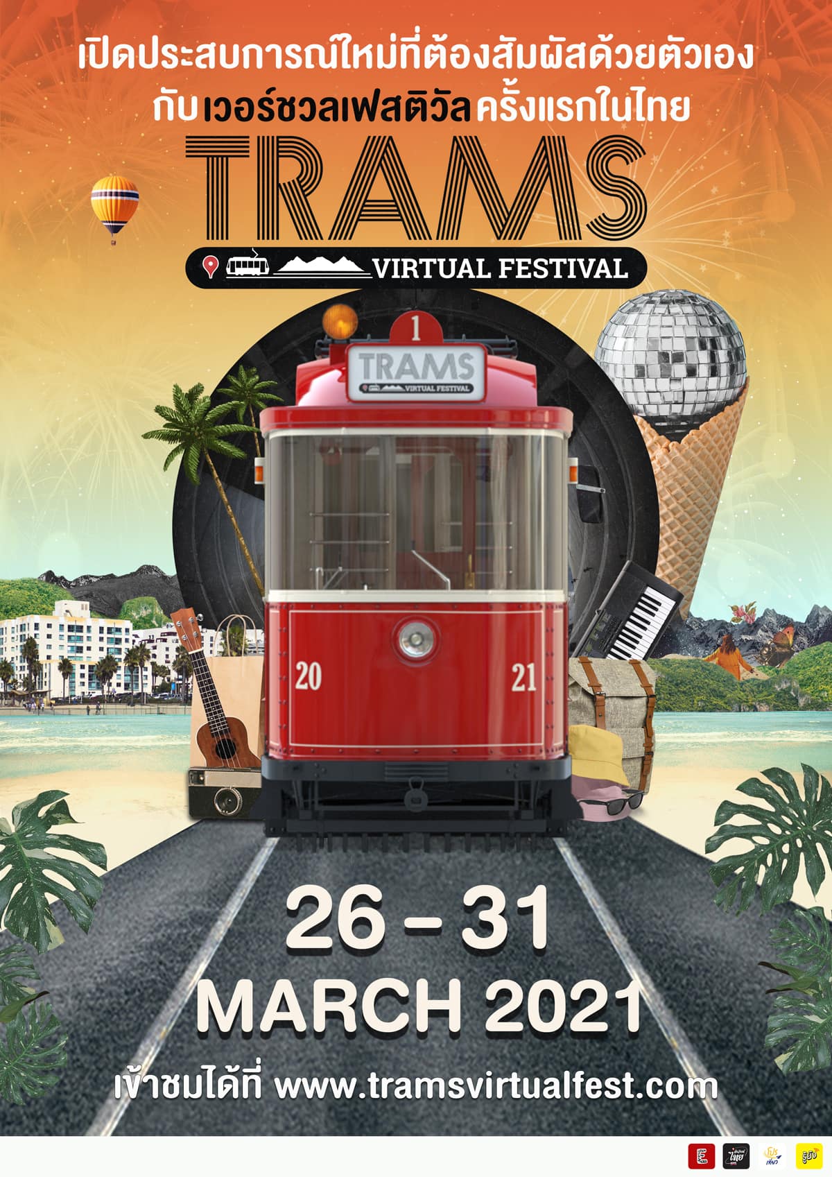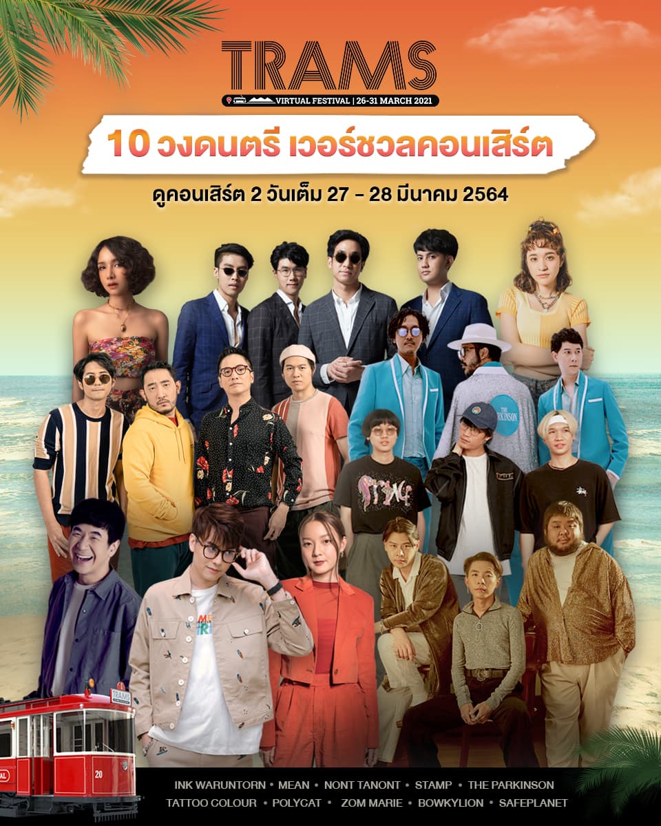 มีนาไม่เหงาเรามีนัดกันในงาน “TRAMS Virtual Festival” สามารถนั่งรถรางเที่ยวงานแทรมส์และร่วมกิจกรรมภายในงานฟรี! (ยกเว้นเข้าชมVirtual Concert)ได้ตั้งแต่วันที่ 26 – 31 มีนาคม 2564 คลิก www.tramsvirtualfest.com