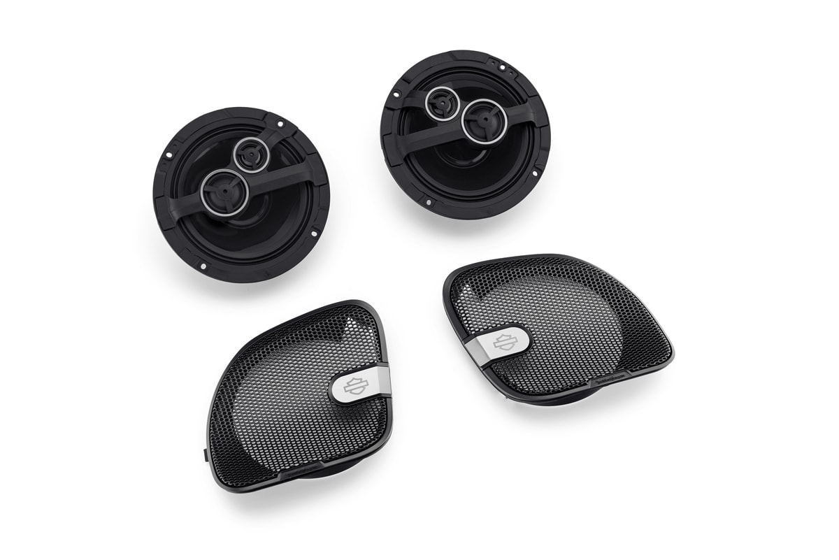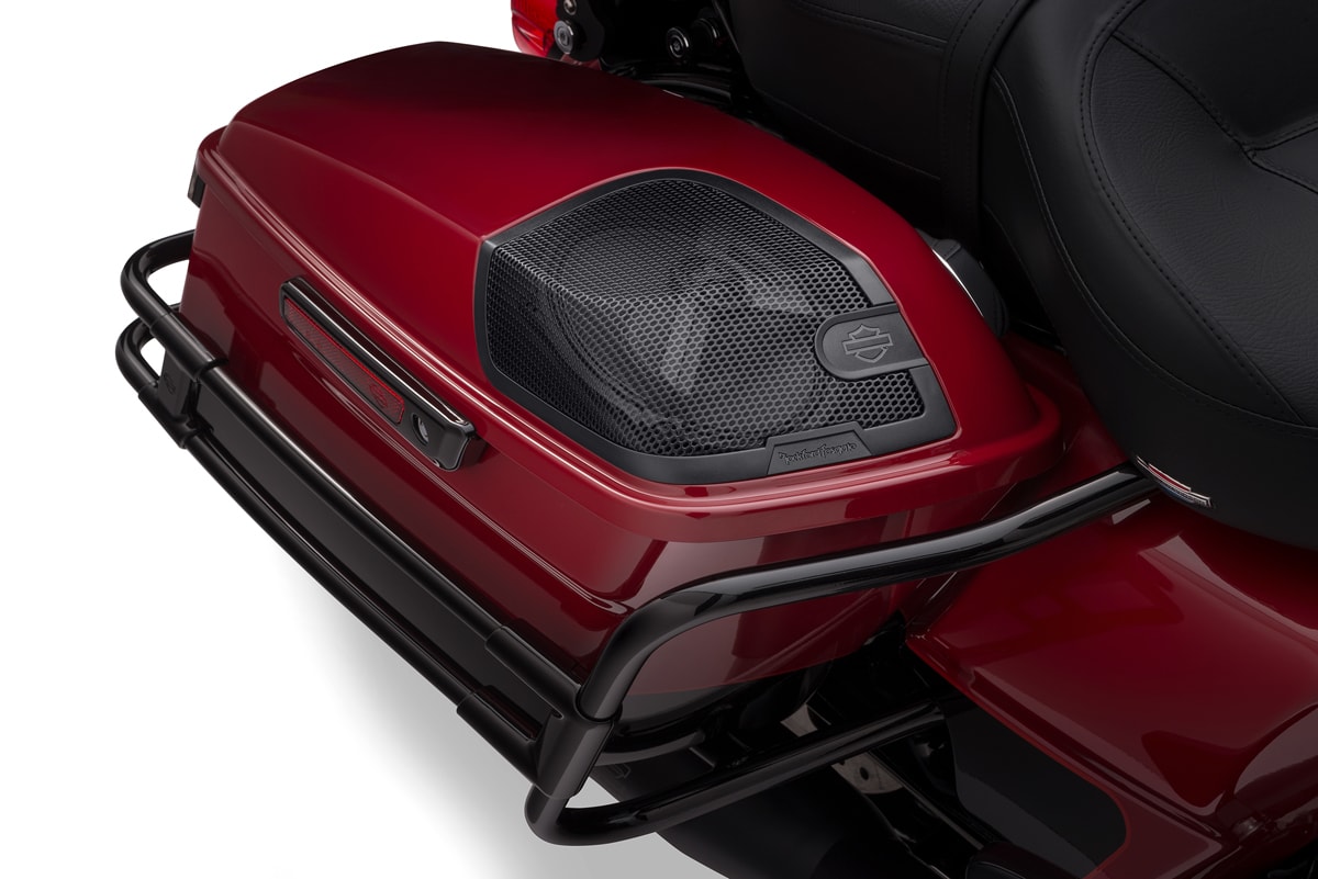 ที่ผู้ขับขี่จะได้สัมผัส มีการออกแบบลำโพงและเครื่องขยายเสียงเป็นพิเศษสำหรับจักรยานยนต์ฮาร์ลีย์-เดวิดสันโดยเฉพาะซึ่งระบบเครื่องเสียง Harley-Davidson Audio จะมีวางจำหน่ายที่ Harley-Davidson Genuine Motor Parts & Accessories และสามารถใช้ได้กับรถ H-D Touring ตั้งแต่รุ่นปี 2557 เป็นต้นไป ที่มีระบบให้ข้อมูลและความบันเทิง Boom! Box