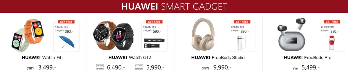 - HUAWEI Watch GT2 รับฟรี HUAWEI Watch GT2 Strap ขนาด 22mm หรือ 20mm มูลค่า 590 บาท