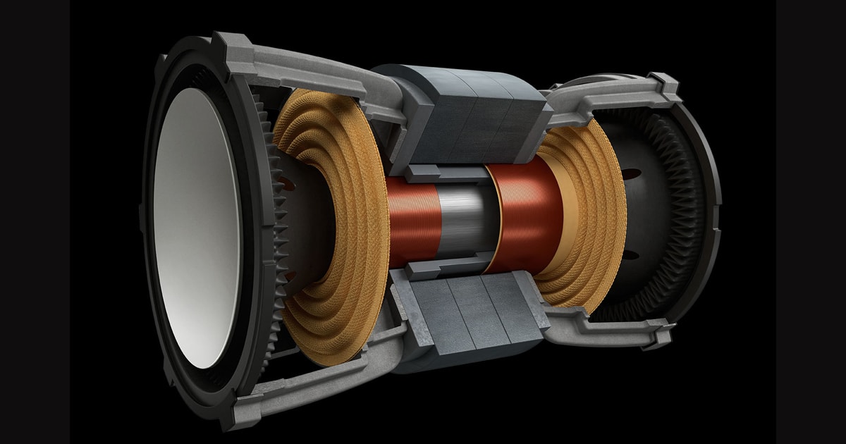 - เทคโนโลยี Uni-core เป็นการควบรวมไดร์เวอร์ ชนิด ‘force-cancelling’ 2 ตัวเข้าเป็นหน่วยระบบเดียวกันด้วยการใช้ตัวขดลวดเสียงร่วมกันและจัดเรียงในแกนเดียว เพื่อลดพื้นที่และเพิ่มประสิทธิภาพในการทำงาน