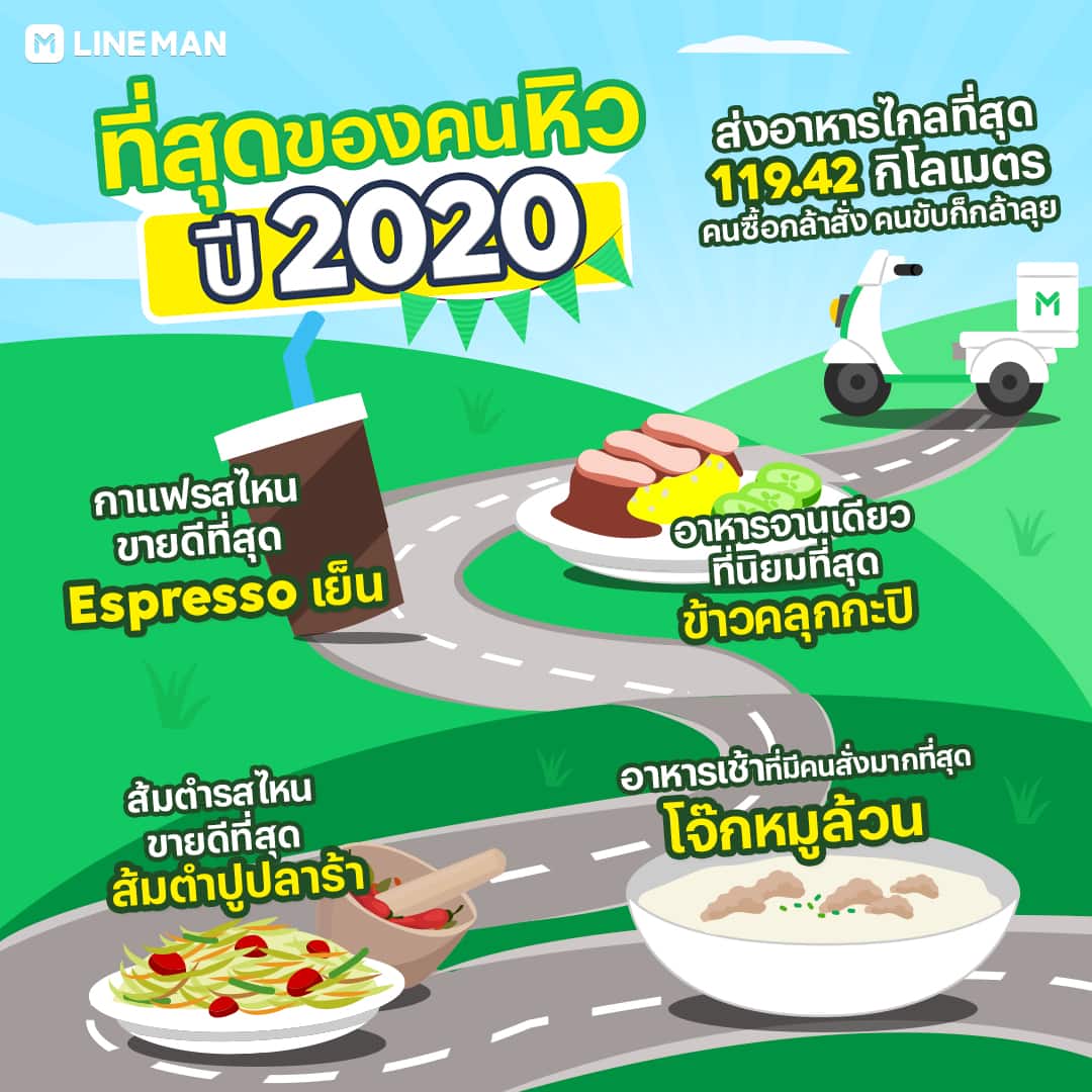 เปิดสถิติ “ที่สุดแห่งปี 2020” บน LINE MAN