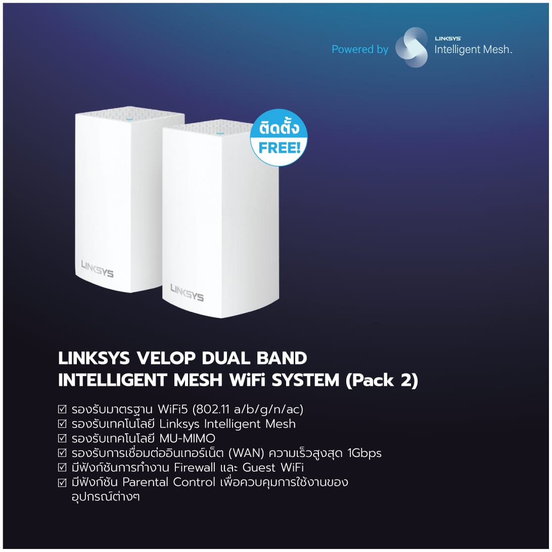 - Velop Dual Band แพค 2 ตัวในราคาเพียง 3,690 บาทจากราคาปกติ 8,990 บาท