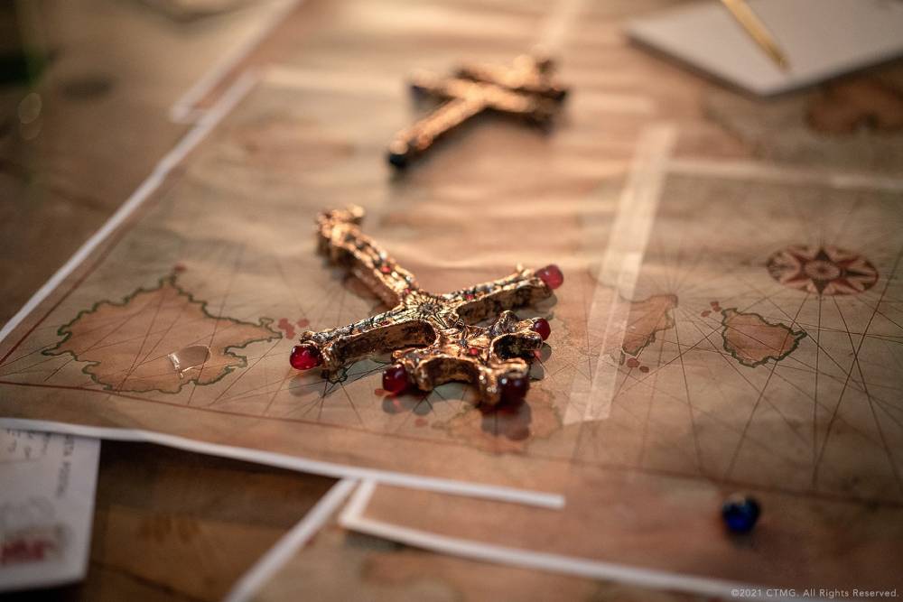 พวกเขาไม่ได้เผยภาพอะไรมากนัก โดยมีภาพหนึ่งเป็นภาพไม้กางเขนสีทองบนแผนที่โลกยุคเก่าที่ถูกนำไปใช้เป็นกุญแจลึกลับในภาพถัดไป รูปที่ 3 เป็นรูปปั้นเก่าแก่ที่ถูกปกคลุมไปด้วยฝุ่นและหยากไย่พร้อมโครงกระดูกที่ถูกแขวนอยู่ด้านหลัง และรูปสุดท้ายเป็นรูปแบบใกล้ ๆ ของแผนที่เก่าที่แตกต่างจากรูปแรกนิดหน่อย