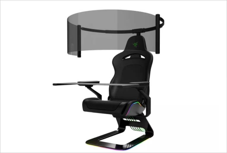 Razer เผยว่าคุณจะได้สัมผัสฟังก์ชั่น Vibration feedback จาก HyperSense ผ่านเก้าอี้นี้ด้วย นอกจากนี้ยังมีแท่นวางที่พับเก็บได้ ช่วยให้คุณเปลี่ยนจากการเล่นด้วยเมาส์และคีย์บอร์ดไปเป็น Gamepad ได้อย่างง่ายดาย ตัวเบาะรองนั่งและขาตั้งติดตั้งไฟ Chroma RGB จาก Razer ทำให้ดูดีมีลูกเล่น