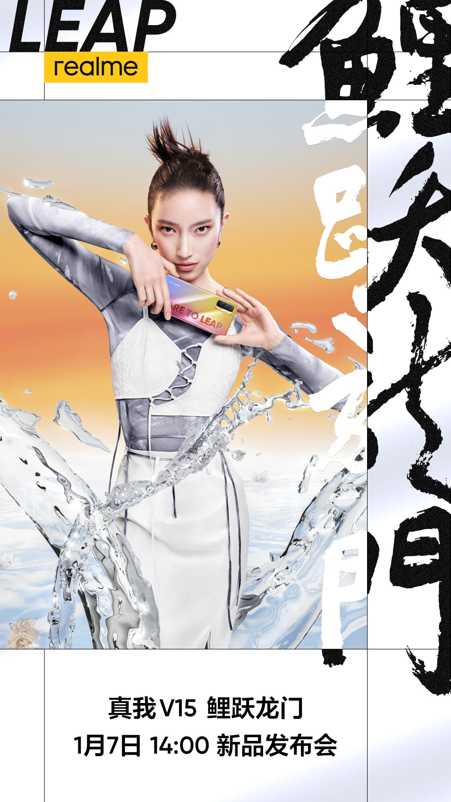 Xu Qi Chase รองประธานของ realme Global ออกมายืนยันอย่างเป็นทางการเกี่ยวกับการเปิดตัว realme V15 โดยปล่อยภาพโปสเตอร์ของงานให้ได้ชมกันแบบเต็มๆ จะเห็นว่าสีของสมาร์ทโฟน Koi ทำออกมาเหมือนสีของปลาโค่ย (หรือปลาคราฟ) ที่มีสีสันสดใส โดยสื่อความหมายถึงความอุดมสมบูรณ์ทางจิตวิญญาณ และความก้าวหน้า