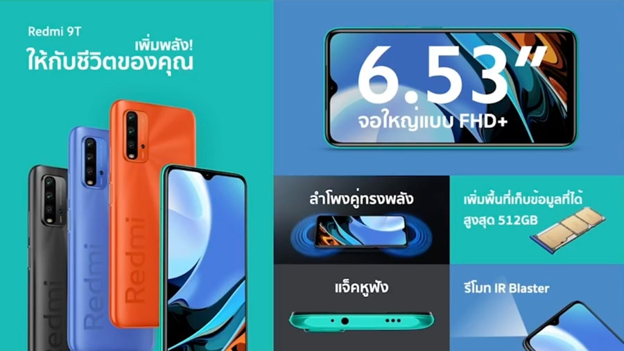 เสียวหมี่ เปิดตัวสมาร์ทโฟน Redmi 9T น้องเล็กกับ ราคา เบาๆ เริ่มต้นแค่ 4,499 บาท มาพร้อมแบตฯ อึดถึง 6,000 mAh และกล้องหลัง AI 4 ตัว วางขายในไทย 15 มกราคมนี้