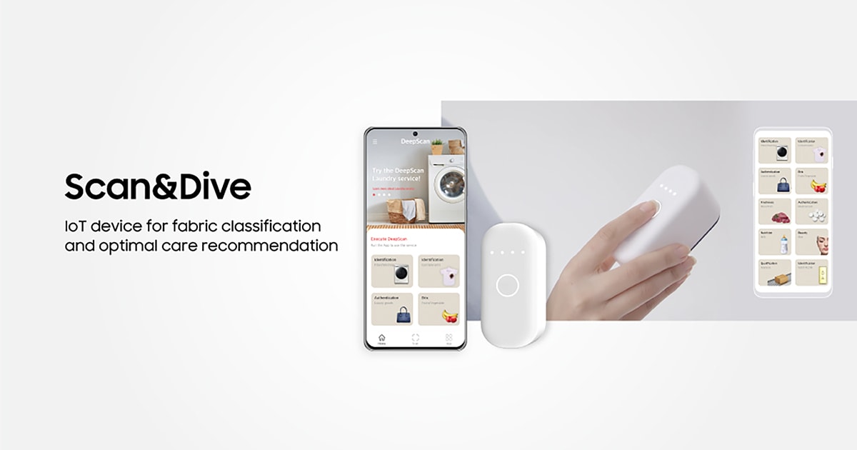 - Scan&Dive คืออุปกรณ์ IoT สำหรับการจำแนกประเภทของผ้า และแนะนำวิธีการดูแลที่เหมาะสมกับเนื้อผ้ามากที่สุด