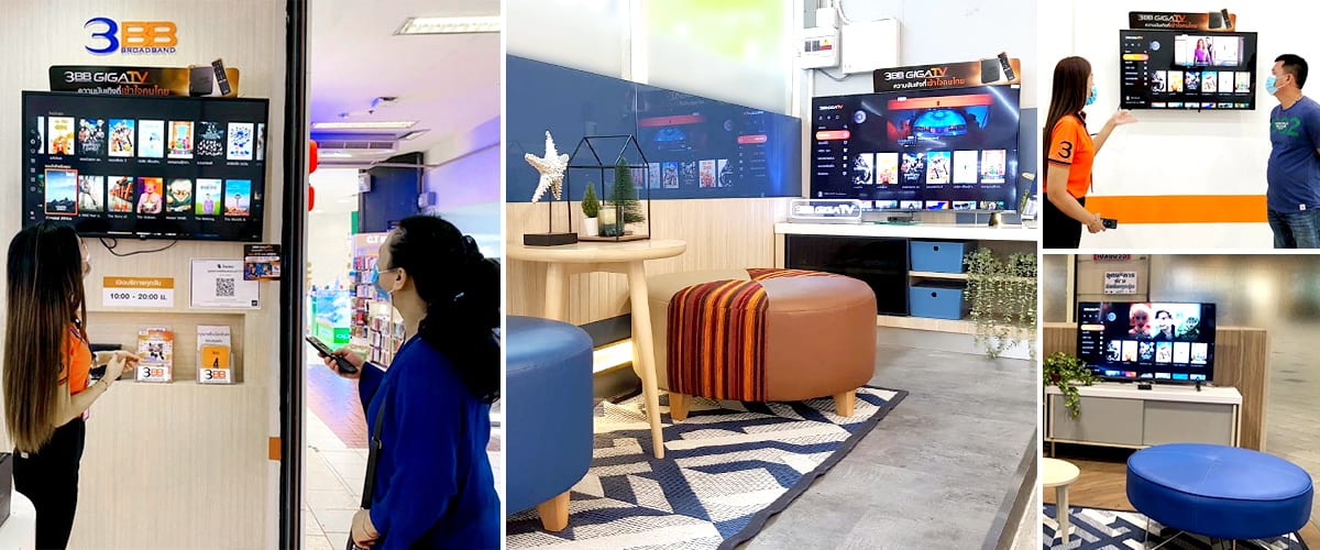 3BB เพิ่มชุดอุปกรณ์สาธิตบริการ 3BB GIGATV ภายในสามบีบีช็อปทั้งในกรุงเทพฯและต่างจังหวัดหลายแห่ง เพื่อเปิดโอกาสให้ผู้ที่สนใจสามารถเข้ามาสัมผัสกับประสบการณ์จริงกับเมนูการใช้งานที่ไหลลื่น และอัดแน่นด้วยคอนเทนต์ระดับโลกจาก HBO GO และ MONOMAX รวมทั้งช่องพรีเมียม ที่ครบครันจุใจ สำหรับทุกคนในครอบครัว ไม่ว่าจะเป็น การ์ตูน กีฬา สาระบันเทิง ข่าวจากทุกมุมโลก และอื่นๆ อีกกว่า 30 ช่อง สัมผัสของจริงก่อนตัดสินใจสมัครใช้บริการ ได้ที่ 3BB Shop ณ มุมสาธิตบริการ