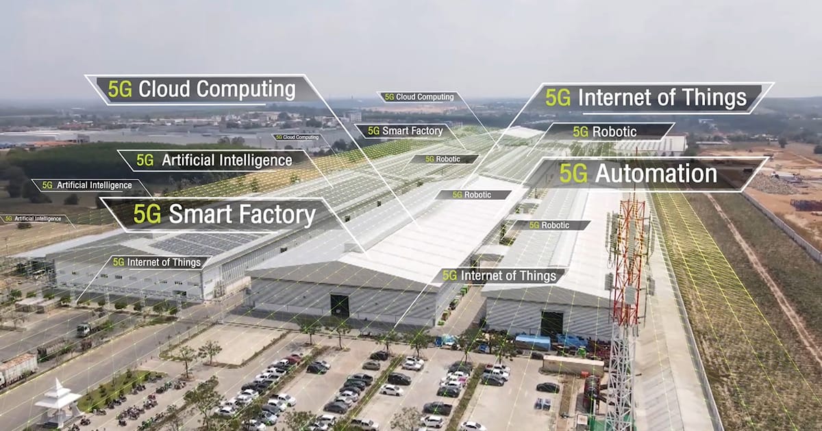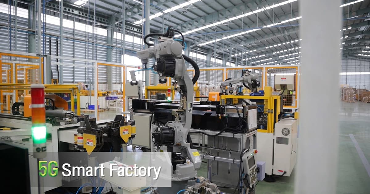 - 5G Smart Robot เป็นการใช้ 5G ควบคุม สั่งการ ในส่วนของ แขนกลหุ่นยนต์ (Robot) ที่ใช้งานในส่วนสายการผลิตที่เกี่ยวข้องเช่น Press, Brazing, CNC, Heat& Cool และ Assembly line เป็นต้น โดยเทคโนโลยี 5G จะนำมาช่วยลดความผิดพลาดที่เกิดจากคน (Human error) และช่วยสร้างความปลอดภัย, ลดการเกิดอุบัติเหตุที่อาจจะเกิดขึ้นกับคนได้