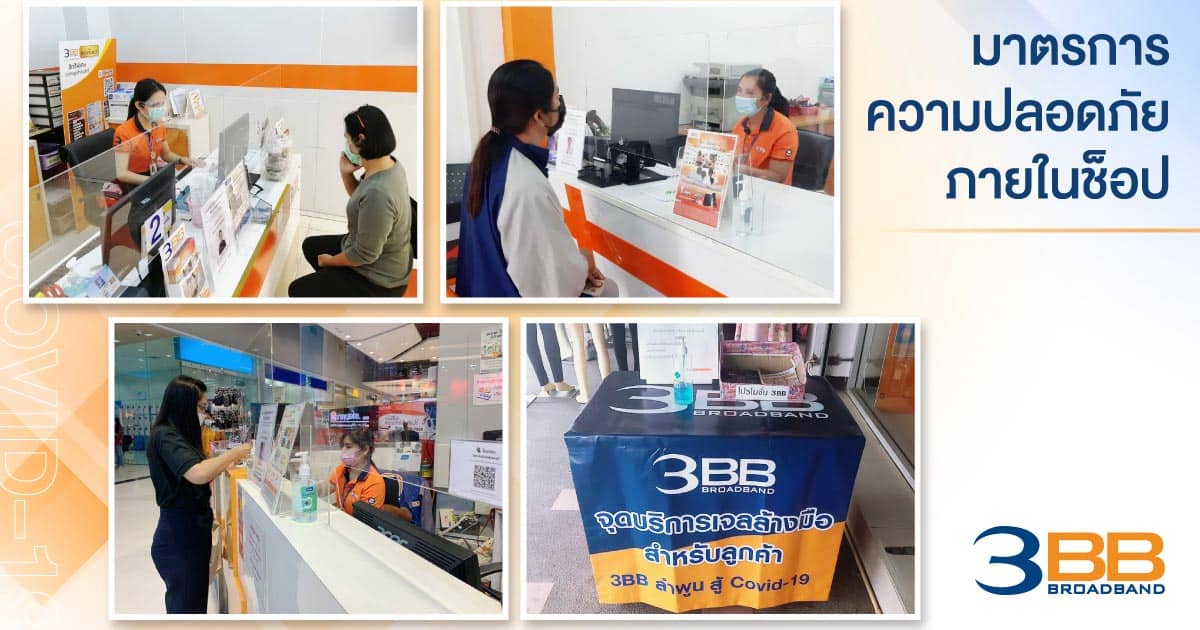 ปัจจุบัน 3BB เปิดช็อปทุกแห่งทั้งในและนอกห้างเพื่อให้บริการลูกค้าอย่างเต็มประสิทธิภาพด้วยมาตรฐานป้องกันเชื้อโควิด-19 อย่างเข้มข้น ลูกค้าจึงมั่นใจได้ว่า นอกจากจะได้รับบริการบรอดแบนด์อินเทอร์เน็ตที่มีคุณภาพตลอดการใช้งานแล้ว ยังได้รับความปลอดภัยของสุขอนามัยอีกด้วย