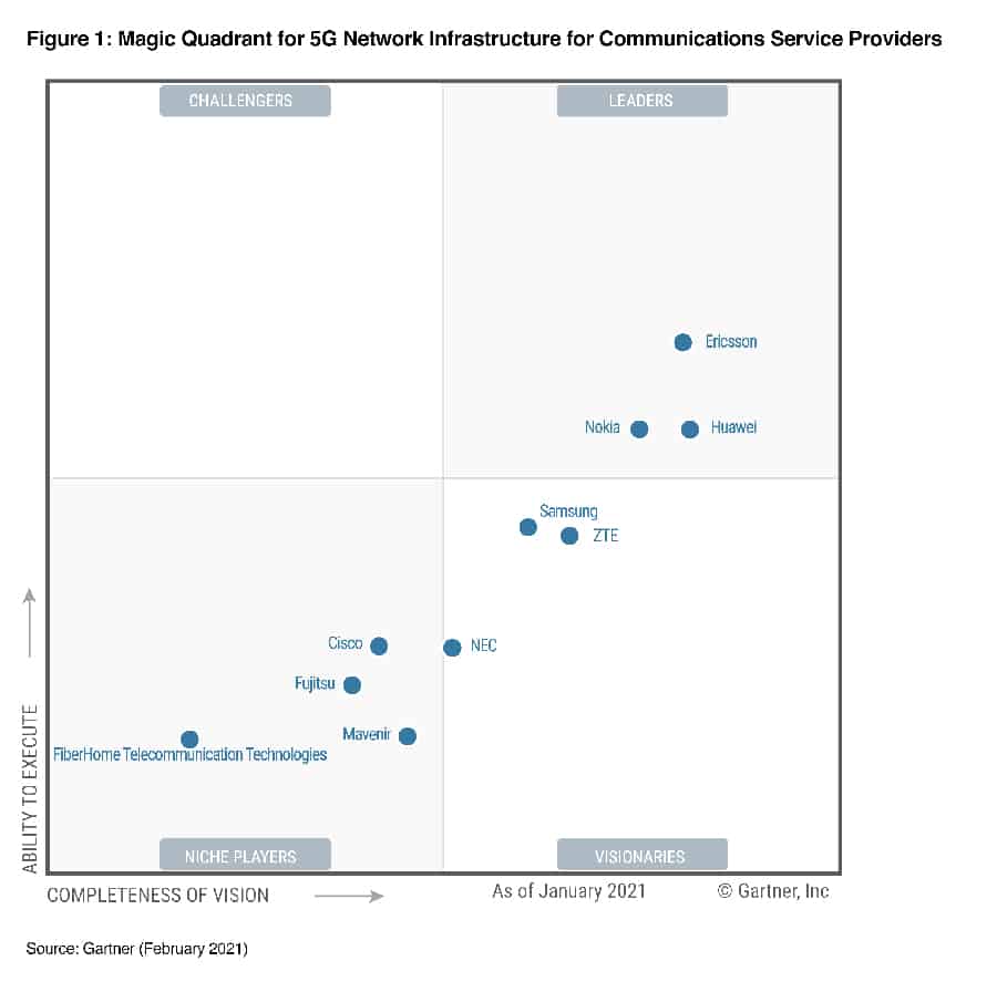 บริษัทที่นำเสนอโซลูชั่น 5G แก่ผู้ให้บริการด้านสื่อสารได้รับการประเมินจากผู้เชี่ยวชาญจากการ์ทเนอร์อย่างครอบคลุมและตรงไปตรงมาในด้านภาพรวมวิสัยทัศน์และความสามารถในการดำเนินงานเพื่อผลักดันโครงสร้างพื้นฐานเครือข่าย 5G