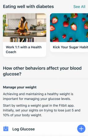 คุณสามารถเพิ่มฟีเจอร์เช็คน้ำตาลในเลือดลงในหน้าจอ Today บนแอป Fitbit ได้โดยไปที่ Discover> Health and Fitness Stats today และเพิ่มระดับฟีเจอร์น้ำตาลในเลือด ตอนนี้มันพร้อมให้บริการแค่ในสหรัฐอเมริกาเท่านั้น แต่ยังไม่มีข้อมูลว่าฟีเจอร์นี้จะพร้อมให้บริการในประเทศอื่นเมื่อไหร