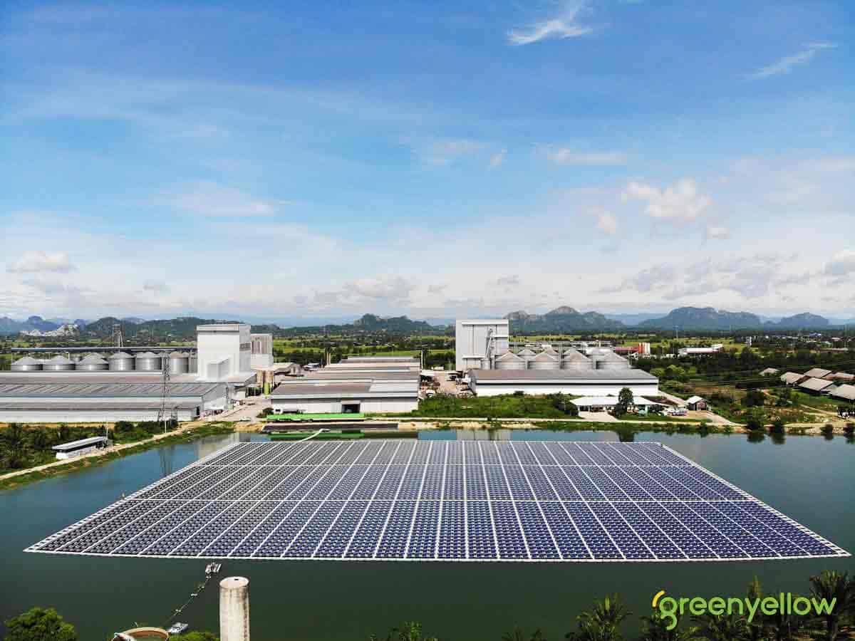 greenyellow บริษัทในเครือ กรีน เยลโล เปิดตัวโรงไฟฟ้าพลังงานแสงอาทิตย์ลอยน้ำแห่งแรกในประเทศไทย โดยติดตั้งโรงไฟฟ้าพลังงานแสงอาทิตย์ลอยน้ำที่มีกำลังการผลิต 2 เมกะวัตต์ (MWp) ณ โรงงานของ บริษัท เอส พี เอ็ม อาหารสัตว์ จำกัด ผู้นำในอุตสาหกรรมอาหารสัตว์ในประเทศ