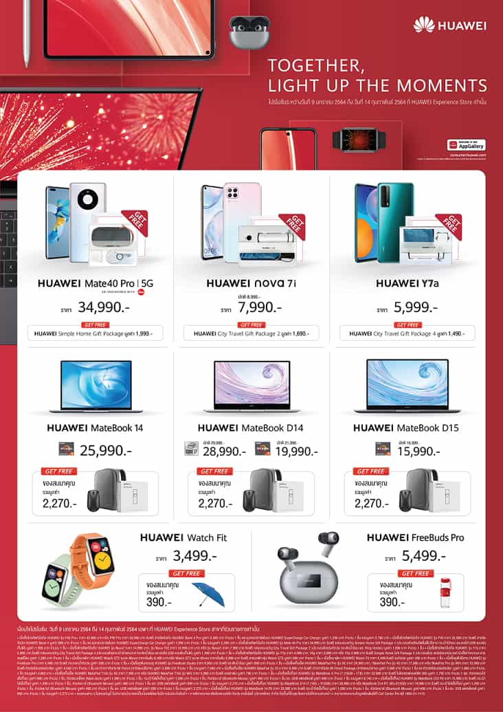 ใครอยากให้พรที่อธิษฐานเป็นจริง คงต้องลองมองหาแก็ดเจ็ตตัวช่วยที่จะทำให้คำขอสำฤทธิ์ผลเร็วขึ้น โดยตั้งแต่วันนี้จนถึงวันที่ 14 กุมภาพันธ์ 2564 หัวเว่ยจัดโปรต้อนรับตรุษจีนโดยเฉพาะ จะขอพรให้ร่ำรวย สุขภาพแข็งแรง หรือความสัมพันธ์แน่นแฟ้น ทั้ง HUAWEI Mate 40 Pro 5G, HUAWEI MatePad Pro 5G, และ HUAWEI Watch Fit ก็พร้อมสานฝันให้เป็นจริง ด้วยโปรโมชันพร้อมของแถมสมนาคุณกันแบบยิ่งใหญ่ เมื่อซื้อสินค้าที่ร้าน HUAWEI Experience Store และร้านค้าที่ร่วมรายการ ตั้งแต่วันนี้จนถึงวันที่ 14 กุมภาพันธ์เท่านั้น