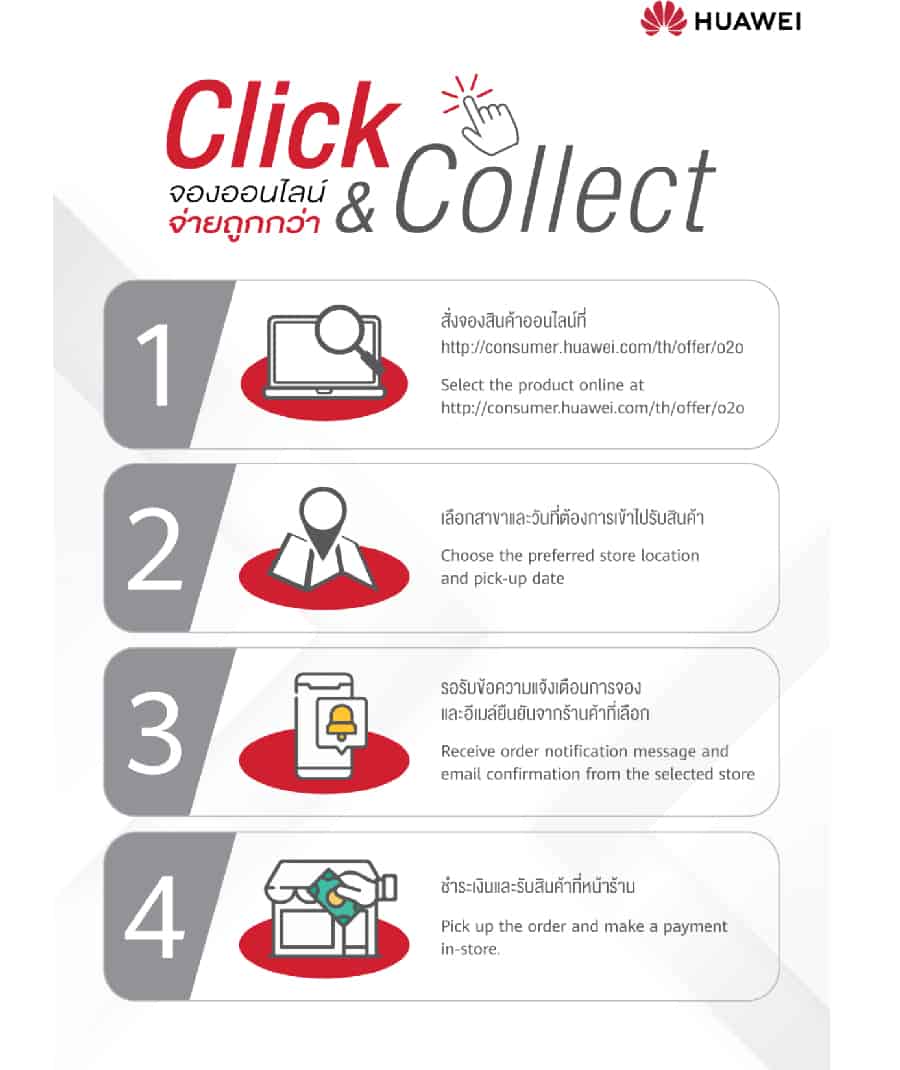 HUAWEI จัดโปรโมชันสินค้าลดราคาพิเศษ กับบริการ Click & Collect พร้อมของสมนาคุณจำนวนจำกัด สำหรับลูกค้าที่สั่งซื้อสินค้าบน HUAWEI Online Store ตั้งแต่วันที่ 23 – 28 กุมภาพันธ์ 2564