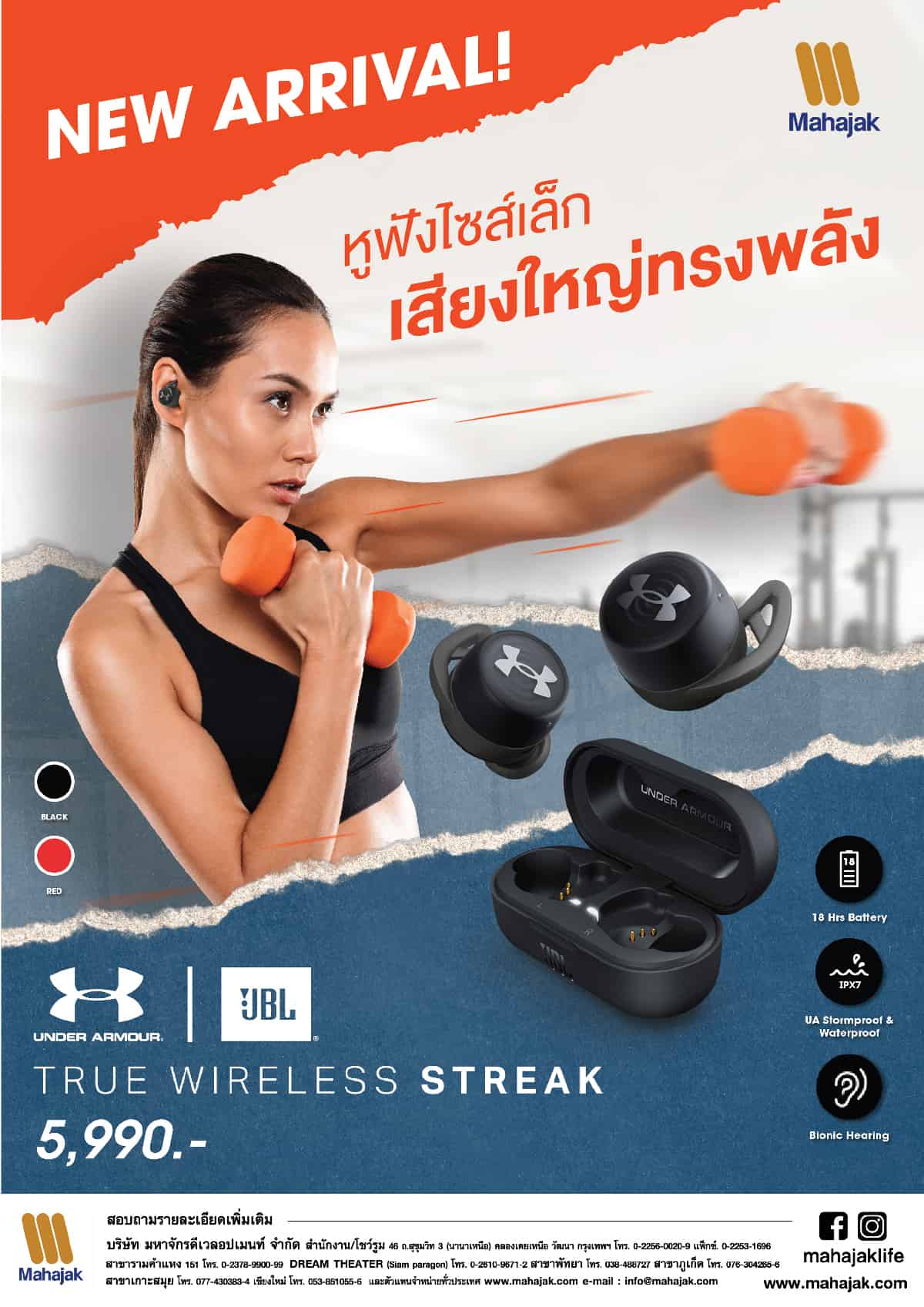 JBL UA Streak หูฟังออกกำลังกาย True Wireless ออกแบบมาเพื่อแฟนๆ ของ Under Armour สายใช้งานง่าย น้ำหนักเบา โดนใจสายสปอร์ต เพียง 5,990 บาท