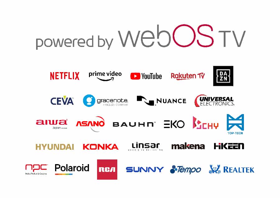 ผู้ผลิตทีวีกว่า 20 รายทั่วโลกได้ร่วมเป็นพันธมิตรในเครือข่าย webOS ของแอลจีแล้ว เช่น RCA, Ayonz และ Konka และยังมีผู้ผลิตอีกหลายรายเตรียมเข้าร่วมเร็ว ๆ นี้ นอกจากนี้ ระบบปฏิบัติการ webOS ยังได้รับการสนับสนุนจากบริษัทเทคโนโลยีอย่าง Realtek, Nuance, Gracenote, CEVA, Universal Electronics และอีกมากมาย