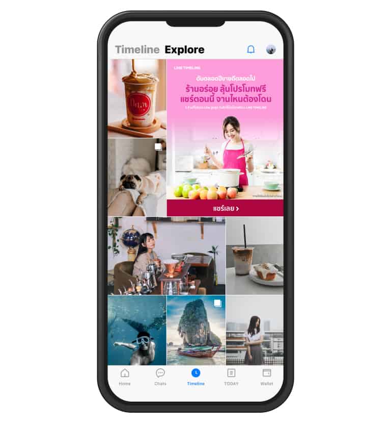 LINE TIMELINE “ดันตลอดปีขายดีตลอดไป ครั้งที่ 2” ที่เปิดพื้นที่ชวนร้านอาหารทุกประเภททั่วไทยที่มี LINE Official Account ร่วมสนุกโพสต์เมนูเด็ด เพื่อลุ้นเป็น 1 ใน 5 ร้านที่ได้ยอดไลก์สูงสุดที่จะครองพื้นที่โปรโมทฟรีบนหน้า Explore