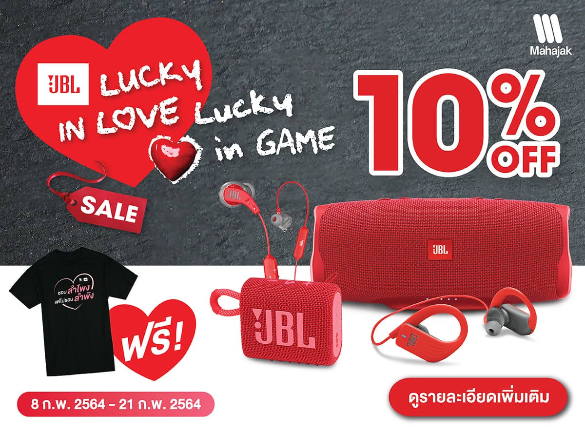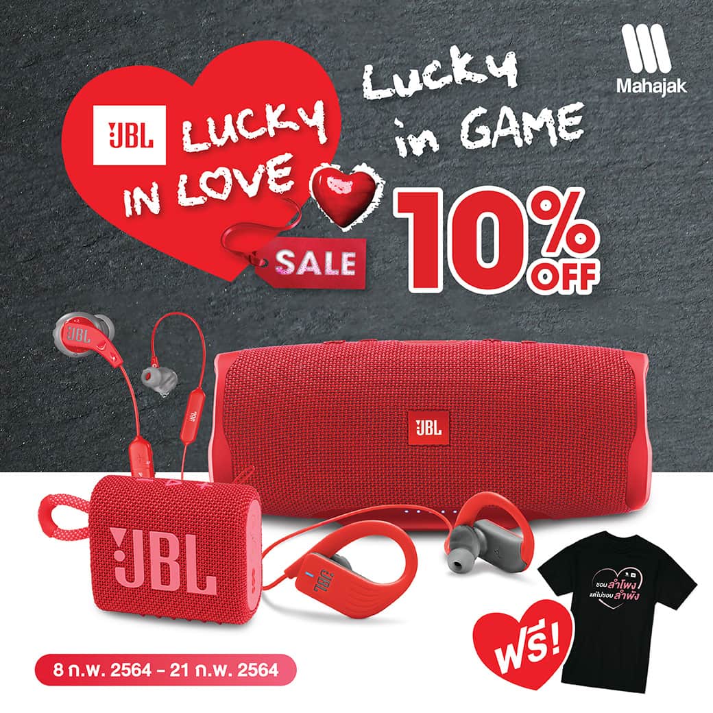 บริษัท มหาจักรดีเวลอปเมนท์ จำกัด ต้อนรับเทศกาลแห่งความรักด้วยแคมเปญ Lucky In Love Lucky In Game ลำโพง หูฟัง ลดราคาถึง 10% (เฉพาะสีแดงเท่านั้น) และเมื่อซื้อสินค้าที่ร่วมรายการ 1 ใบเสร็จ รับฟรี!! เสื้อยืด Limited Edition ชอบลำโพง ไม่ชอบลำพัง (มูลค่า 550 บาท)