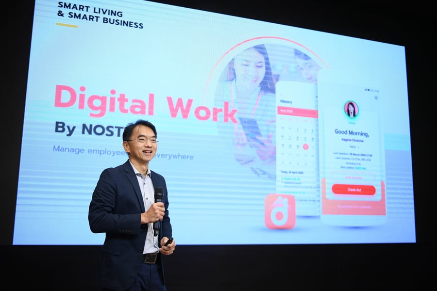 - ผ่านแนวคิด IoT & Smart Solutions นำนวัตกรรมการเชื่อมต่อข้อมูลจากอุปกรณ์ IoT พัฒนาเป็นสมาร์ทโซลูชัน เพื่อการบริหารจัดการที่ง่ายและดียิ่งขึ้น ประกอบด้วย 1) Digital Work by NOSTRA แอปพลิเคชันเพื่องานบริหารทีมทำงานนอกสถานที่อย่างมีประสิทธิภาพ 2) Smart Health by NOSTRA นวัตกรรมการเชื่อมต่อข้อมูลจาก Activity Tracker Platform บันทึกการติดตามข้อมูลกิจกรรมการดำเนินชีวิต ค้นหารูปแบบความสัมพันธ์ของพฤติกรรมต่าง ๆ เชื่อมโยงร่วมกับข้อมูลเชิงพื้นที่ ช่วยให้แพทย์สามารถประเมินสุขภาพผู้ป่วยเบื้องต้นได้ จัดการวิเคราะห์ข้อมูลได้ระยะไกล ติดตามและประเมินผลการรักษาได้อย่างใกล้ชิด 3) IoT & Asset Management ออกแบบและให้คำปรึกษาหน่วยงานต่าง ๆ ในการนำเทคโนโลยี IoT ไปปรับใช้เพื่อการจัดการดูแลติดตามทรัพย์สินที่มีค่าขององค์กร ลดความสูญเสียจากการสูญหาย สามารถติดตามตำแหน่ง รวมถึงสถานะข้อมูลของทรัพย์สินได้เรียลไทม์ ยืดหยุ่นตามความต้องการของธุรกิจ และ 4) Smart Drive By NOSTRA แพลตฟอร์มที่บูรณาการข้อมูลจากอุปกรณ์ IoT เก็บข้อมูลระหว่างการขับขี่ พร้อมนำมาวิเคราะห์พฤติกรรมการขับขี่ แสดงเป็นรายงาน หรือกราฟสถิติ สำหรับทีมบริหารนำไปใช้ในการตัดสินใจในเชิงบริหารจัดการยานพาหนะในองค์กร หรือต่อยอดธุรกิจประกันภัยแบบเฉพาะบุคคล