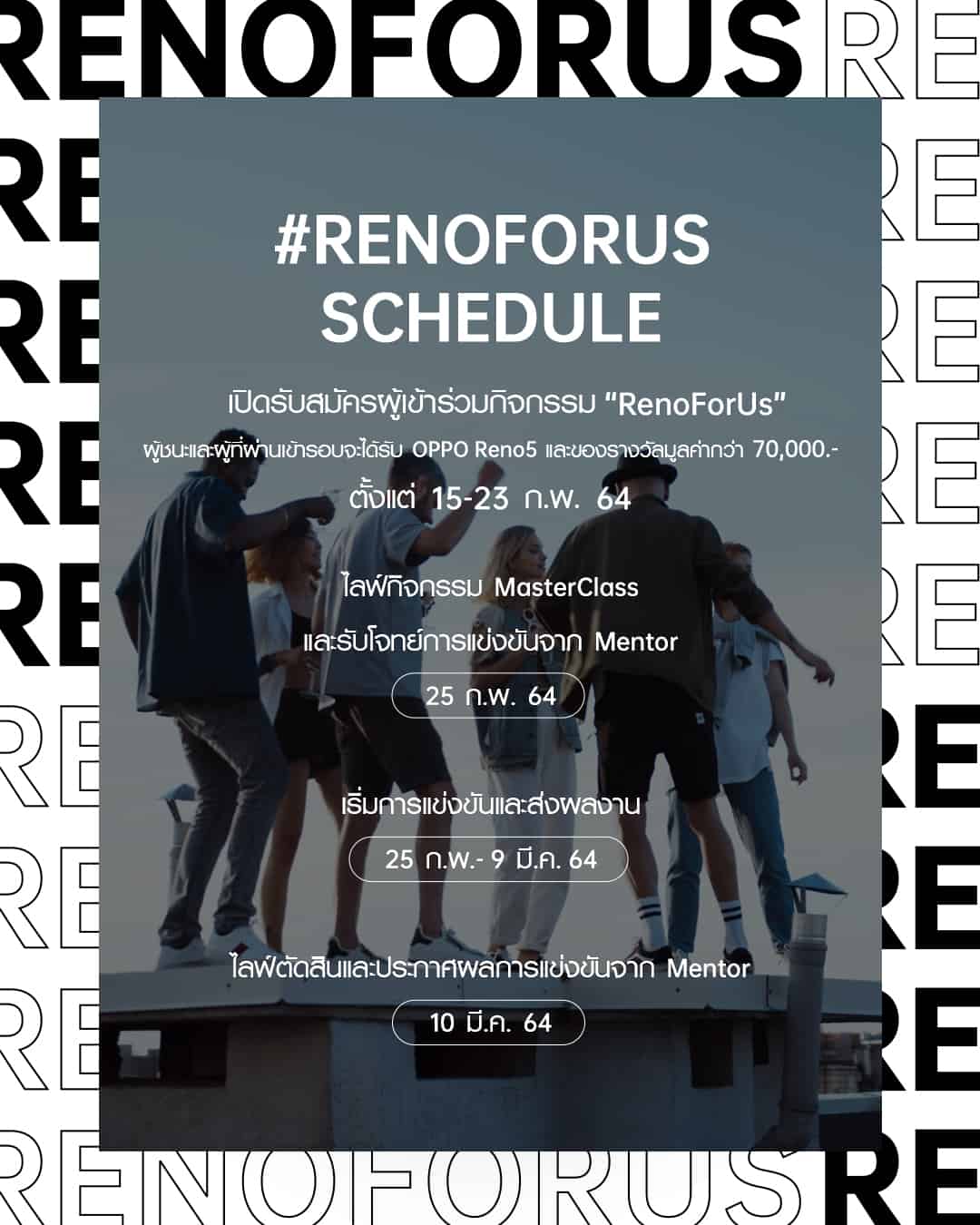 ใครที่สนใจสามารถเข้าร่วมกิจกรรม “Reno For Us” ได้แล้วตั้งแต่วันที่ 15 – 23 กุมภาพันธ์ 2564 หรือ ติดตามข้อมูลข่าวสารได้ที่ www.facebook.com/oppothai/