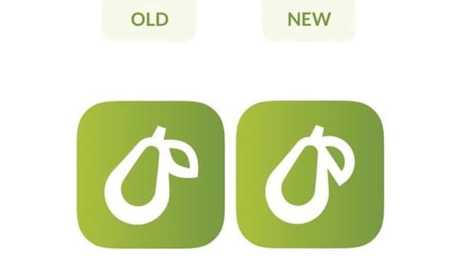 จากรูปพบว่าโลโก้ของแอป Prepear มีการเปลี่ยนแปลงเล็กน้อยที่สังเกตุเห็นได้ชัดคือส่วนของใบลูกแพร์ที่ปรับให้มุมล่างของใบนั้นเรียบตรงจากของเดิมที่เป็นเส้นใบโค้งมน
