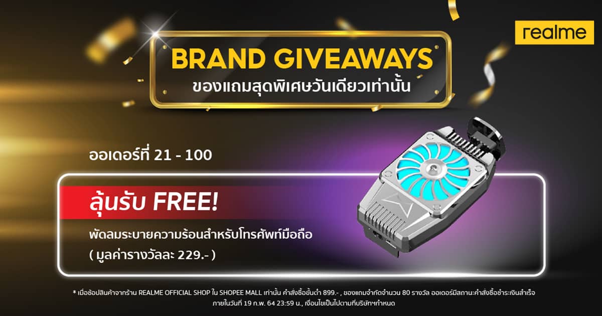 ● สำหรับออเดอร์ที่ 21 – 100 เมื่อสั่งซื้อขั้นต่ำ 899 บาท ลุ้นรับฟรี พัดลมระบายความร้อนสำหรับโทรศัพท์มือถือ มูลค่า 229 บาท
