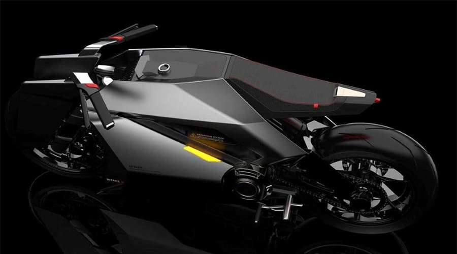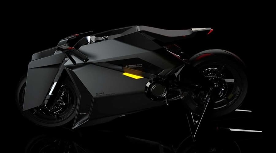ดูแล้วรูปร่างหน้าตาของคอนเซปต์มอเตอร์ไซค์ไฟฟ้าของ Aether คันนี้ชวนให้นึกถึง E-Boxer ของ BMW และ Cybertruck ของ Tesla ที่มี 2 ล้อ