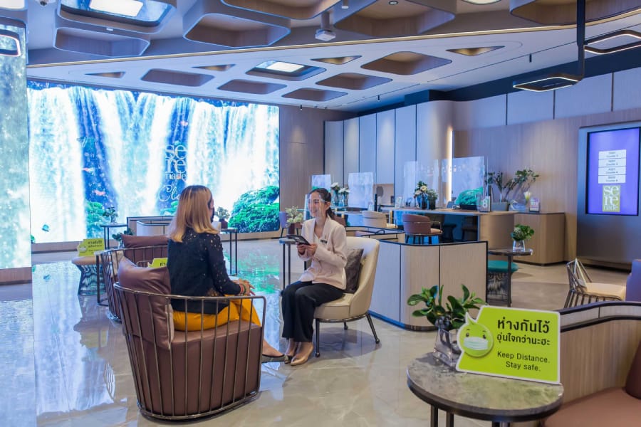 - New Identity Design – เชื่อมโยงทุกไลฟ์สไตล์ ด้วยสิ่งอำนวยความสะดวกครบครัน เติมเต็มประสบการณ์พิเศษที่ไร้ขอบเขตของยุคดิจิทัล อาทิ Digital Dynamic Visualization จอแสดงภาพขนาดใหญ่ที่จะทำให้ลูกค้าได้สัมผัสและรู้สึกถึงความเป็นธรรมชาติที่รายล้อมอยู่รอบตัว Modular Display & Seat พื้นที่จัดแสดงสมาร์ทโฟนและ IoT Gadget ที่สามารถปรับเปลี่ยนตำแหน่งและยืดหยุ่นเพื่อรองรับกิจกรรมต่างๆ ที่จะเกิดขึ้นในอนาคตได้อย่างเหมาะสม รวมถึงการจัดบริเวณ Smart Seating ที่รักษาระยะห่างทางสังคม (Social Distancing) มาพร้อมกับที่ชาร์จแบตเตอรี่ และเพิ่ม Wireless Charger Table บริเวณ Waiting area ที่ลูกค้ารอรับบริการ