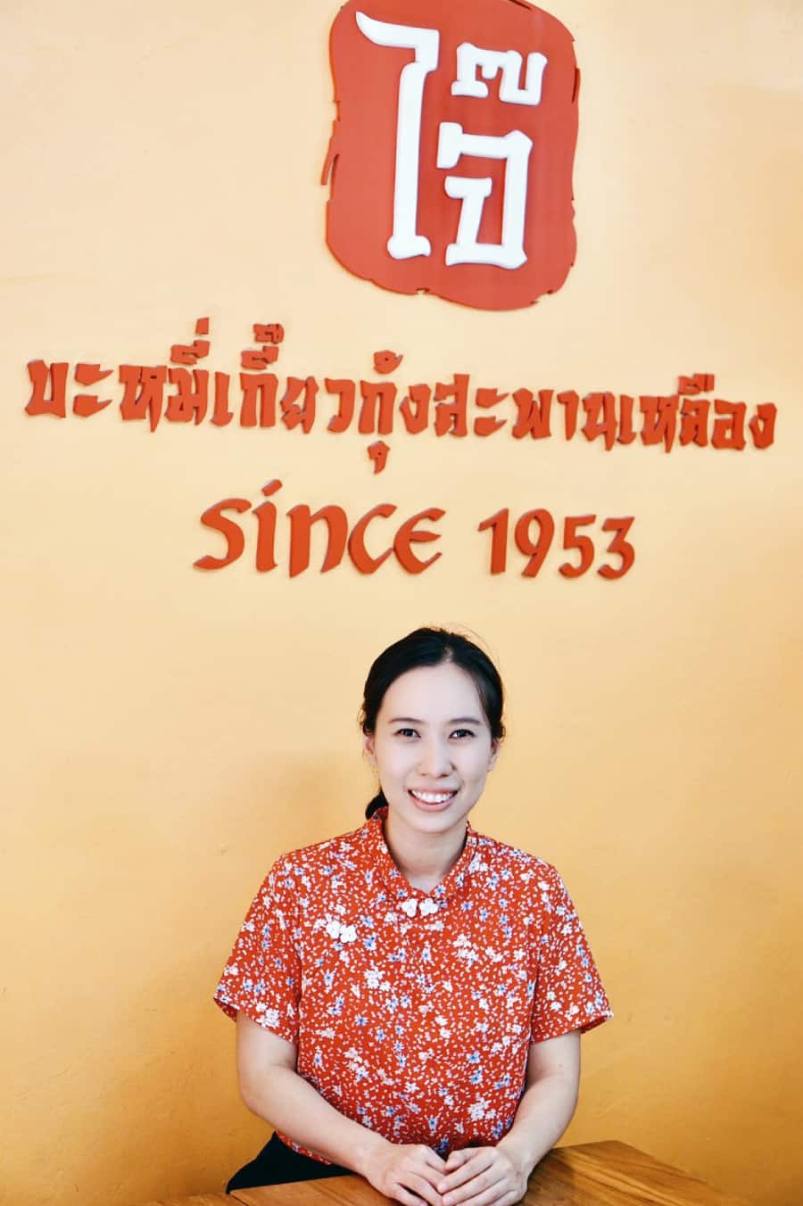 “สำหรับไจ๊ฯ ร้านนี้ ได้กลับมาเปิดอีกสาขาในซอยสองพระ ซึ่งมิ้วเป็นคนดูแลเองค่ะ เคล็ดลับความอร่อยของไจ๊ฯ อยู่ที่เส้นบะหมี่ที่ทำเองสดใหม่ทุกวัน แป้งบะหมี่จะใช้ไข่เป็ดเป็นส่วนผสม ทำให้ได้เส้นบะหมี่ที่มีความเหนียวนุ่มหอมไข่ ส่วนเกี๋ยวก็มีเกี๊ยวไส้กุ้งทะเลผสมกับหมู ซึ่งคนจะชอบและนิยมมาก แล้วยังมีเกี๊ยวไส้หมูที่ทำมาตั้งแต่รุ่นคุณปู่ก็ยังขายอยู่ค่ะ สิ่งที่ทำให้ลูกค้าติดใจก็เพราะบะหมี่และเกี๊ยวร้านเราเป็นแบบโฮมเมด จึงแตกต่างจากร้านอื่นทั้งคุณภาพและรสชาติ ที่สำคัญเราไม่ได้ใส่สารเคมีใดๆ จึงอร่อยและปลอดภัย