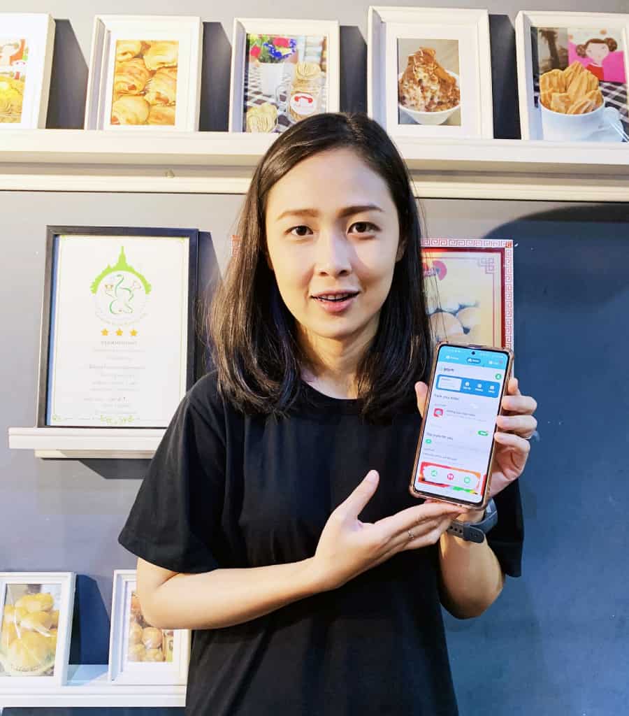 “ในภาวะที่โควิด 19 ระบาด ต้องบอกว่ายอดขายหน้าร้านเราลดลงไปถึง 70% ทำให้เราต้องหันมาเน้นการขายออนไลน์ โดยร่วมกับฟู้ดแอปพลิเคชันต่างๆ ซึ่ง Gojek ก็เป็นหนึ่งในนั้น ต้องบอกว่าในแต่ละวันมีคนสั่งขนมผ่านแอป Gojek เข้ามาเยอะเหมือนกัน พูดง่ายๆ ว่ายุคนี้เราต้องปรับตัวหันมาใช้เทคโนโลยีเพื่อช่วยส่งเสริมการขายด้านออนไลน์ ซึ่งฟู้ดแอป ก็ช่วยให้ยอดขายเพิ่มขึ้น 50% เลยค่ะ อีกอย่างการสั่งผ่านแอป ทำให้ลูกค้าสะดวกสบายมากขึ้น แล้วยังสามารถดูรูป ดูรายชื่อขนม และเช็คราคาในแอป ได้ด้วย
