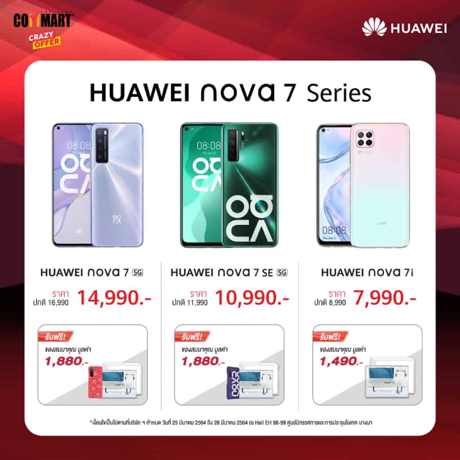 พบกับ โปรโมชั่น เด็ดโดนใจทั้งหมดนี้ ได้ที่บูธของ Huawei ในงาน Commart Thailand 2021 ณ Hall EH 98-99 ศูนย์นิทรรศการและการประชุมไบเทค บางนา วันที่ 25-28 มีนาคม 2564 นี้