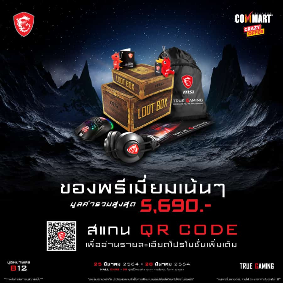 พบกัน โปรโมชั่น Commart ภายในบูธของ MSI หมายเลข B12 และบูธของตัวแทนจำหน่ายที่ยกขบวนสินค้าของ MSI ไปออกงานกันอย่างครบครัน ตั้งแต่วันที่ 25 มีนาคม 2564 จนถึงวันที่ 28 มีนาคม 2564