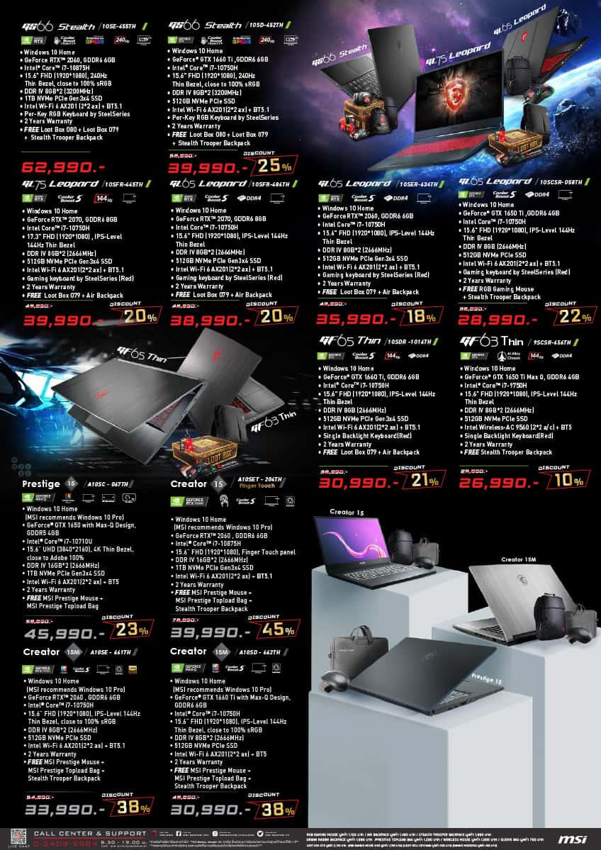 โปรโมชั่น ราคาพิเศษ สำหรับเกมมิ่งโน้ตบุ๊กสเปคสุดเทพ ทั้ง GE, GS และ Creation ซีรี่ส์ที่หายากสุดๆในตอนนี้ ก็มีมาให้จับจองเป็นเจ้าของที่งานเช่นกัน จำนวนจำกัด วัดความเร็วกันไป พร้อมข้อเสนอสุดเร้าใจ ในส่วนลดมูลค่าสูงสุดถึง 50%