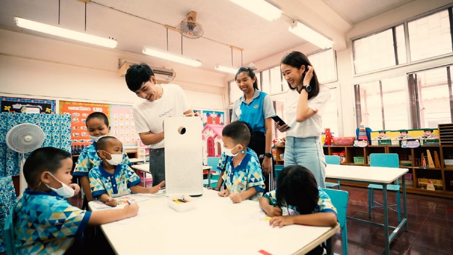 เสียวหมี่ ในฐานะผู้นำเทคโนโลยีของโลก และเป็นผู้ผลิตเครื่องฟอกอากาศอัจฉริยะชั้นนำ จึงมีแนวคิดขอเป็นส่วนหนึ่งในการช่วยแก้ปัญหาโดยสร้างพื้นที่ให้มีอากาศบริสุทธิ์ในโรงเรียน นำร่องโครงการเพื่อสังคมมอบเครื่องฟอกอากาศรุ่น Mi Air Purifier 3H จำนวนทั้งสิ้น 300 เครื่อง พร้อมไส้กรองอากาศ คิดเป็นมูลค่ารวม 2,096,700 บาท ให้กับโรงเรียนในสังกัดกรุงเทพมหานคร โดยมีท่านผู้ว่าราชการกรุงเทพมหานครเป็นผู้รับมอบ เมื่อวันที่ 10 กุมภาพันธ์ที่ผ่านมา และได้มีการลงพื้นที่จริงร่วมกับสำนักการศึกษากรุงเทพมหานครในการเข้าไปติดตั้งเครื่องฟอกอากาศในโรงเรียน โดยเน้นไปที่ห้องกิจกรรมอย่างห้องสมุด และห้องสำหรับเด็กที่มีความจำเป็นที่ต้องได้รับการดูแลเป็นพิเศษ อาทิ เด็กอนุบาล เป็นต้น
