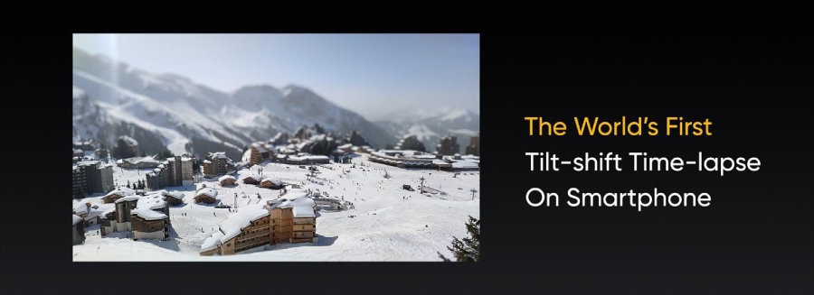 การถ่ายภาพสไตล์ Tilt-shift เกิดจากการทำงานของเลนส์ที่มีราคาสูงอย่างเลนส์ Tilt-shift ที่สามารถเลือกโฟกัสบางส่วนของภาพให้เกิดความชัดแค่ส่วนใดส่วนหนึ่งและเบลอส่วนอื่น ๆ ที่ไม่อยู่ในโฟกัส การถ่ายภาพแนวนี้จะทำให้เกิดความรู้สึกคล้ายกำลังดูโมเดลจำลองหรือโลกจำลองขนาดเล็ก ด้วยอัลกอริธึมการถ่ายภาพ Tilt-shift แบบใหม่ ทำให้ realme 8 series สามารถถ่ายภาพแบบ Tilt-shift และการถ่ายวีดีโอ Tilt-Shift Time-Lapse ได้เร็วขึ้น 10 เท่า นำเสนอมุมมองของโลกที่แปลกใหม่ไม่เหมือนใคร ซึ่ง realme 8 Pro เป็นสมาร์ทโฟนรุ่นแรกของโลกที่มาฟีเจอร์การถ่ายวีดีโอ Tilt-Shift Time-Lapse