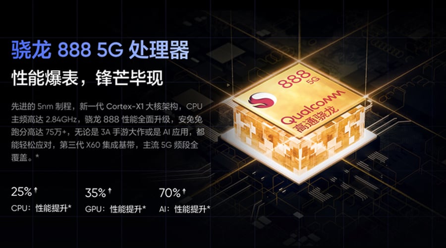 สมาร์ทโฟนใช้ขุมพลัง Snapdragon 888 มาพร้อมแรม LPDDR5 8GB และที่เก็บข้อมูล UFS3.1 128GB / 256GB ไม่รองรับการใส่หน่วยความจำภายนอก โทรศัพท์รันบนระบบปฏิบัติการ Android 11 และ Realme UI 2.0